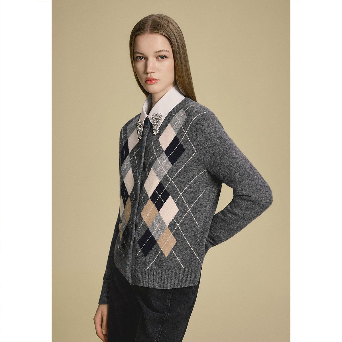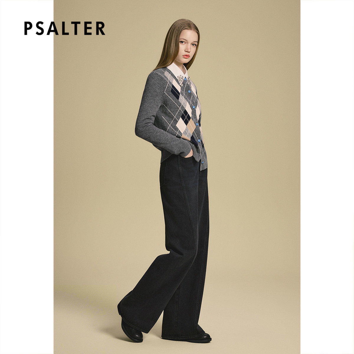 PSALTER诗篇学院风美丽奴纯羊毛菱格纹针织开衫女2025秋款