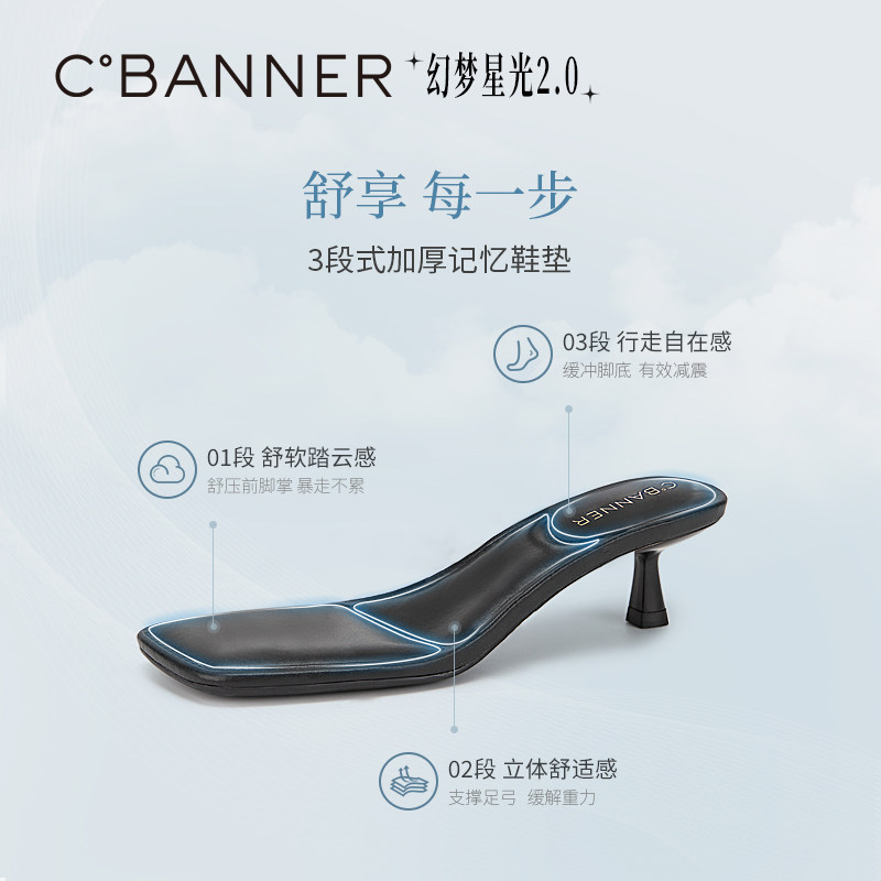 73hours女鞋都市光影2025春季新款银色包头后空凉鞋尖头高跟鞋女