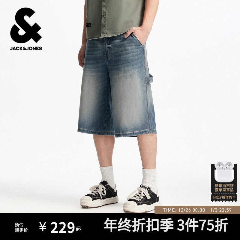 杰克琼斯男装秋季新款潮酷出街百搭时尚猫须水洗廓形牛仔短裤下装
