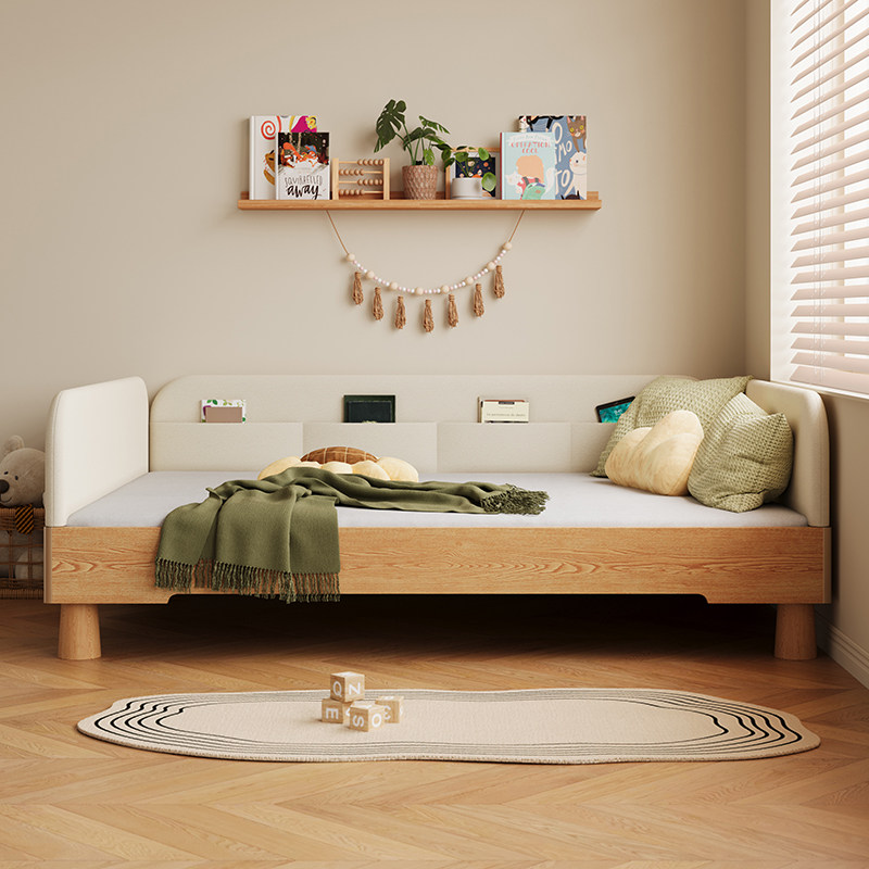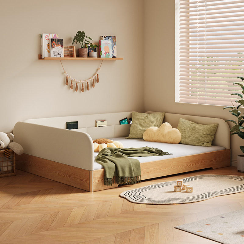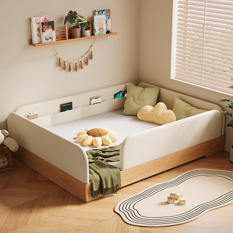 爱家智造实木儿童床蒙氏地台床小户型软包落地床简约单人家用小床