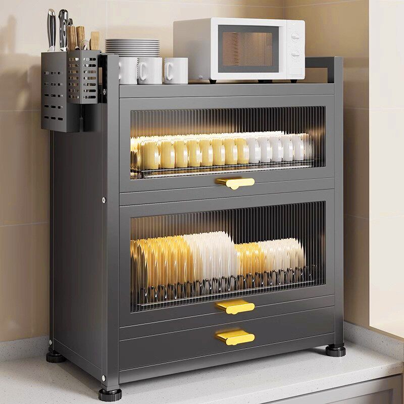 厨房碗碟收纳架带门防尘碗架台面多功能收纳盒家用碗筷碗盘沥水架