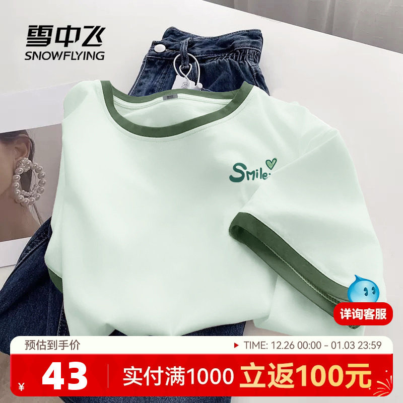 雪中飞短袖女t恤夏季2026新款宽松撞色体恤上衣女士纯棉半袖夏PC