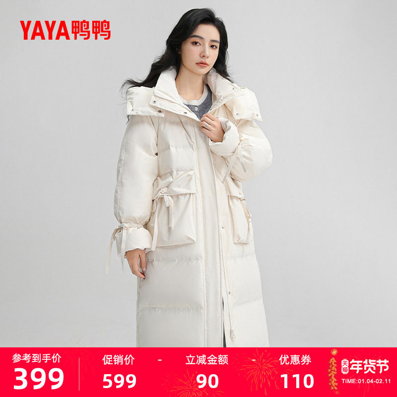 鸭鸭羽绒服女2025年冬季新品韩版中长款时尚连帽加厚保暖鸭绒外套