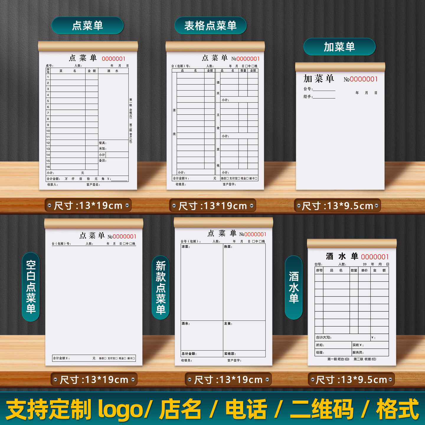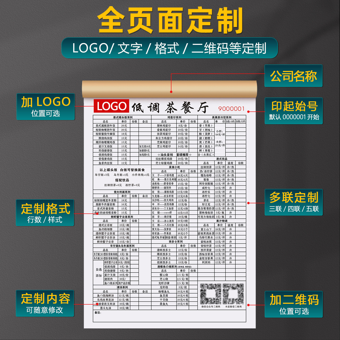 【茶餐厅专用点菜单】茶楼手写菜单本二联定制餐饮订餐开单收银记账本酒店酒楼消费清单点单点餐纸酒水加菜单