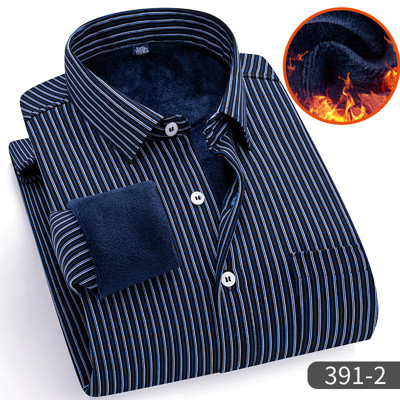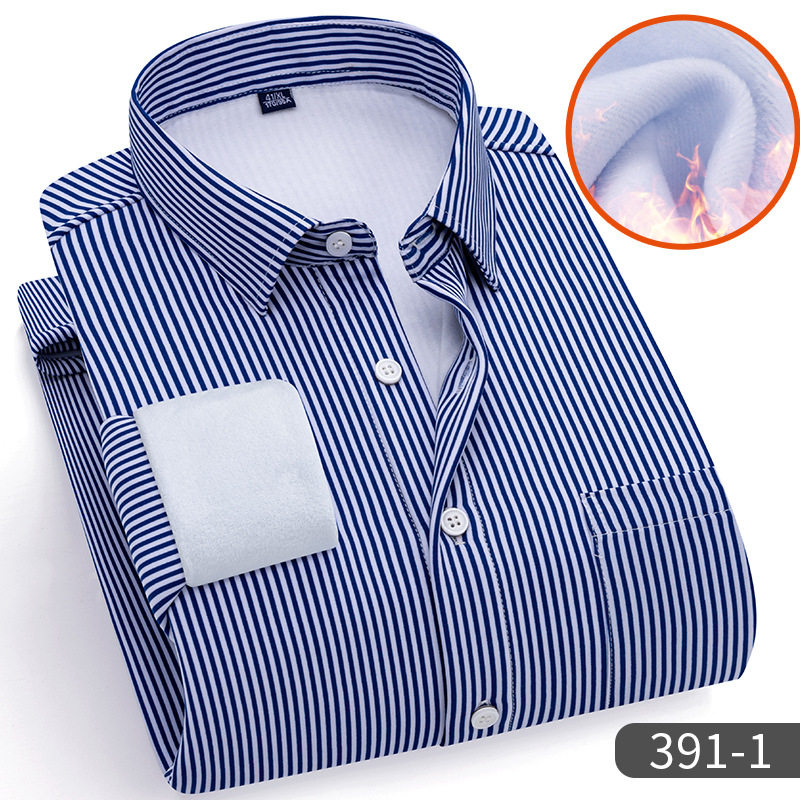 罗蒙加绒加厚衬衫男士冬季商务休闲保暖免烫抗皱衬衣上衣打底衫