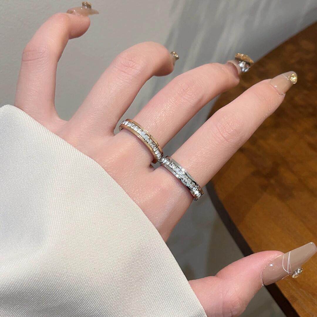 素圈戒指女指环钛钢14k镀玫瑰金关节戒尾戒ins潮闺蜜情侣搭配戒指