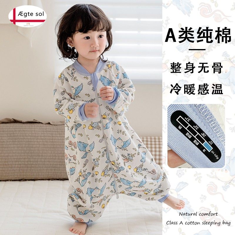 AEgtesol儿童纯棉秋冬分腿睡袋宝宝无骨四季通用防踢被婴儿连体衣