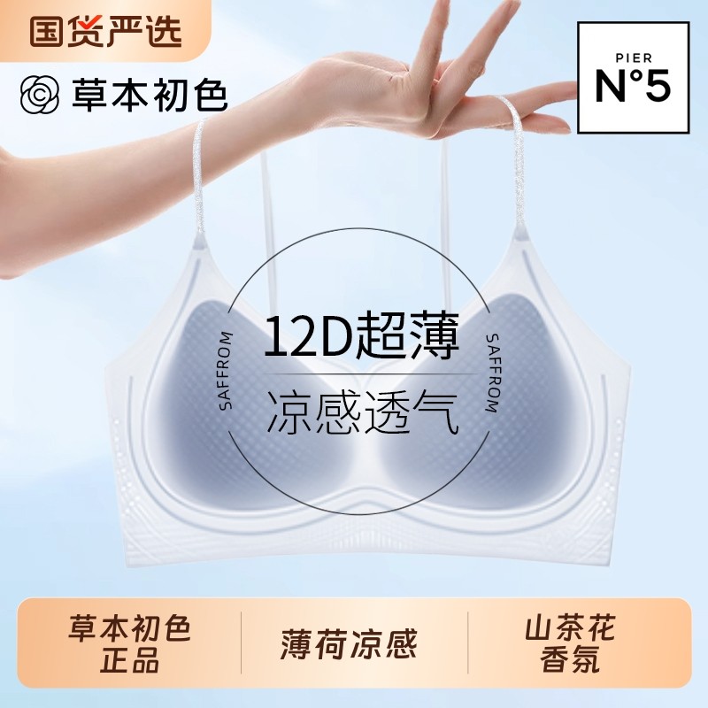 草本初色细肩带内衣女山茶花香氛夏季薄款凉感小胸聚拢无痕文胸罩