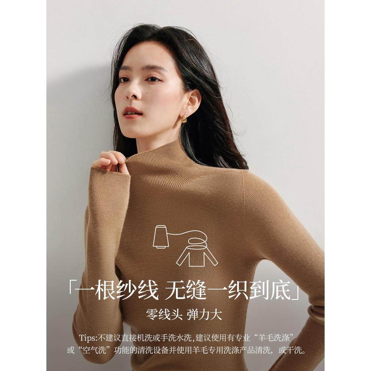 100%美丽诺羊毛可机洗羊毛衫女2025年秋季新款百搭半高领打底衫