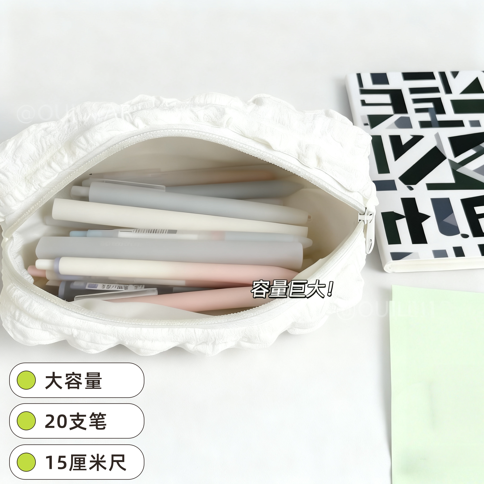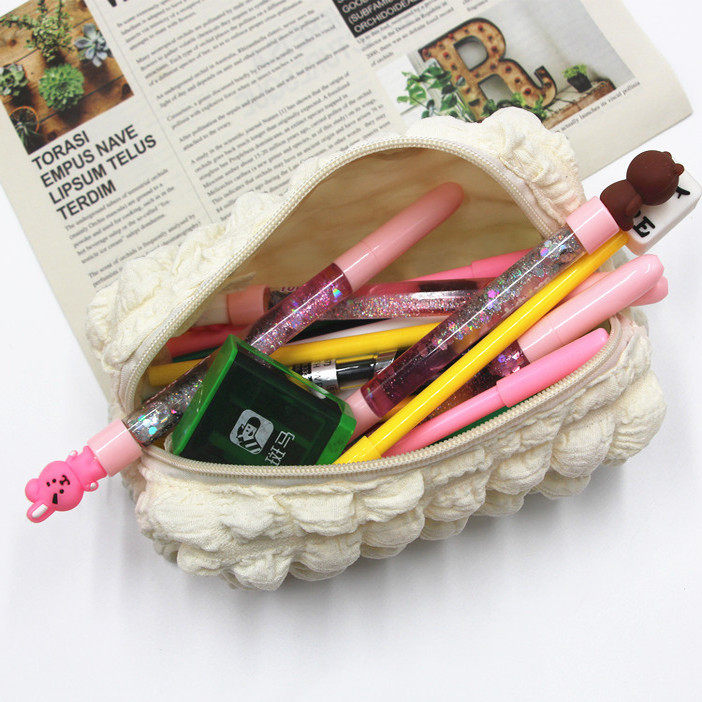 小众奶油泡芙笔袋大容量日系ins女生文具收纳袋学生专用款创新奶fufu黑白两色软萌铅笔袋初中生高颜值铅笔盒