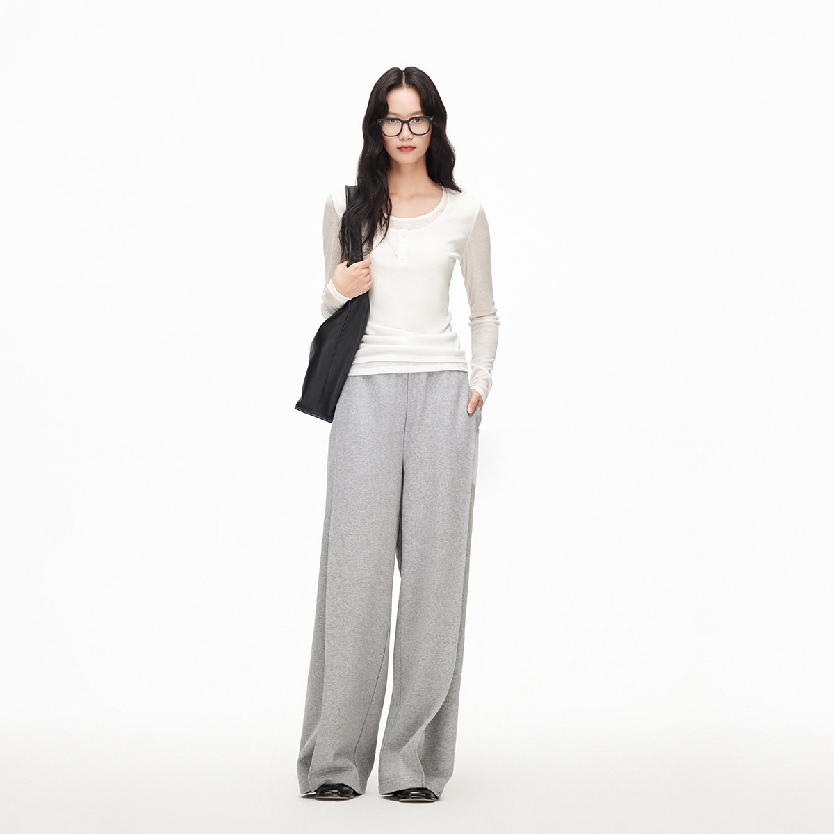 三福长袖上衣女2025新款秋冬季圆领内搭打底衫修身白色t恤女装