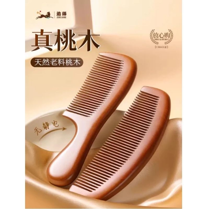桃木梳正品桃木梳子女士专用经络梳天然家用防静电檀木细齿绿檀