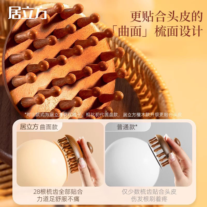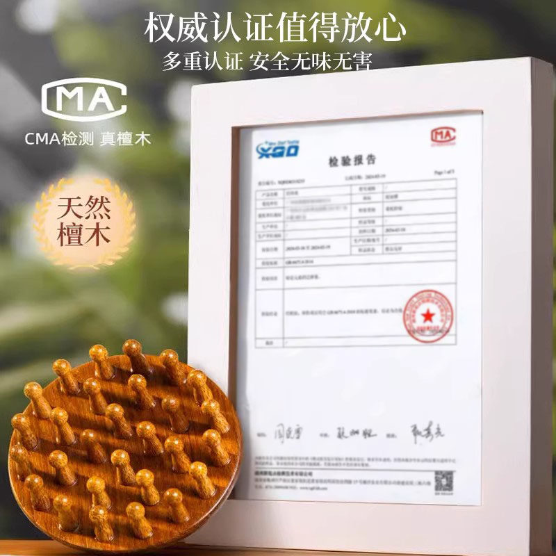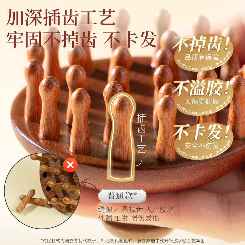 高端檀木圆盘按摩梳头部头皮经络梳毛囊疏通神器梳子女士指环便携