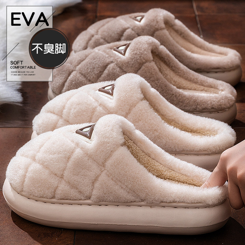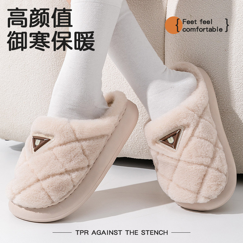 朴西棉拖鞋女士秋冬季厚底简约保暖室内居家用软底防滑情侣棉拖男