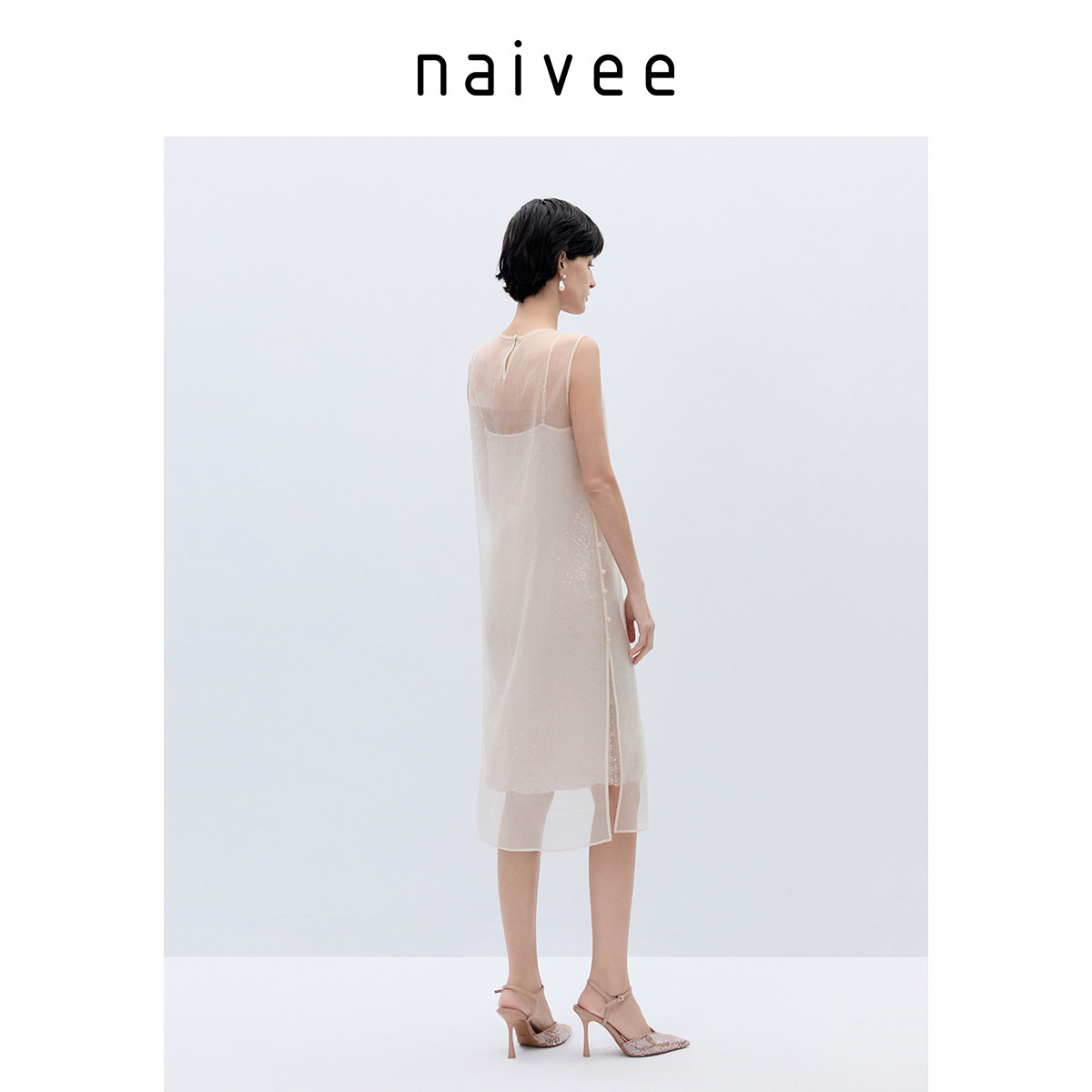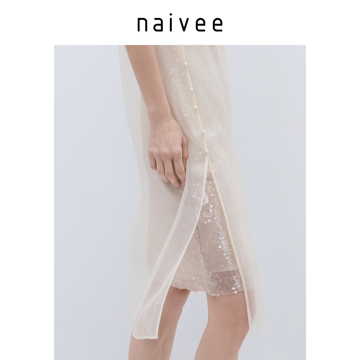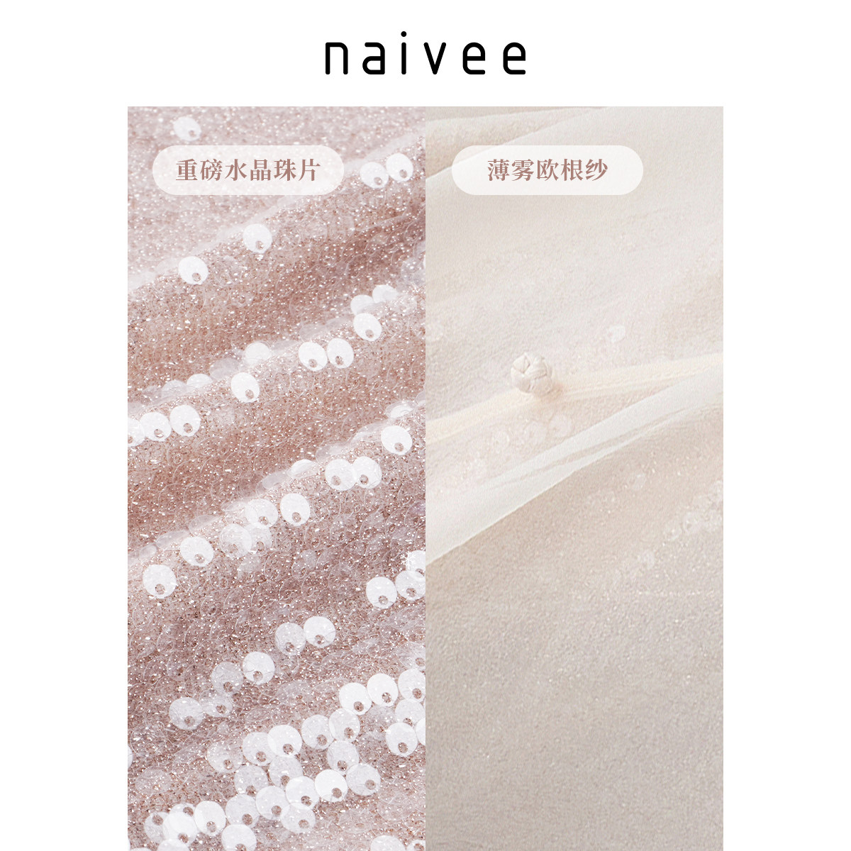纳薇薄纱吊带裙直筒宽松连衣裙两件套重工亮片赴宴轻礼服裙女