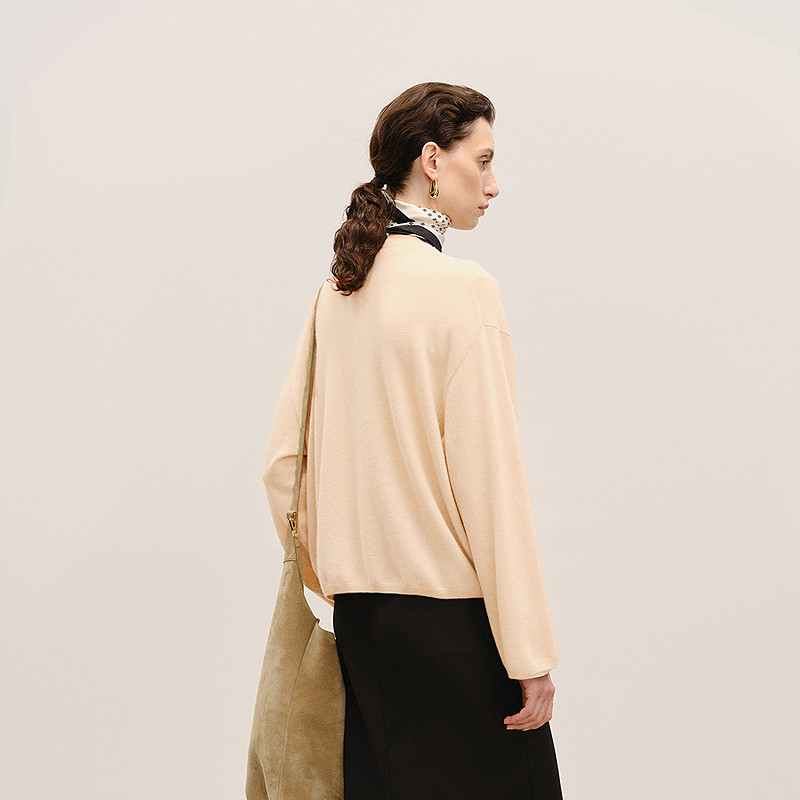 鄂尔多斯市断码羊绒开衫女春秋新款宽松毛衣外套翻领针织羊毛衫