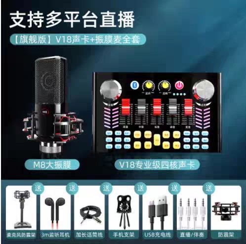 金运V18声卡直播专用设备电容麦克风全套手机电脑通用网红主播k歌