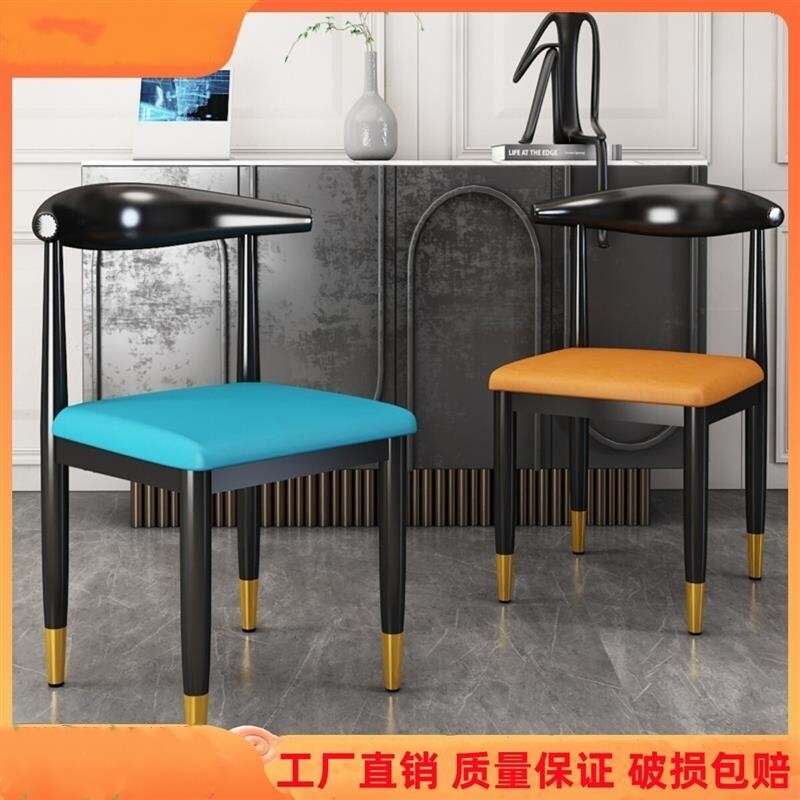 餐椅靠背家用椅子北欧书桌现代轻奢简约餐厅凳子仿实木铁艺牛角椅