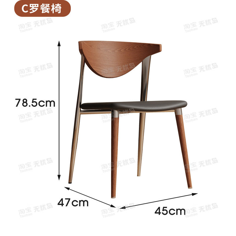 轻奢侘寂风餐椅皮软包设计师现代弯曲木咖啡厅实木椅子家用书房椅