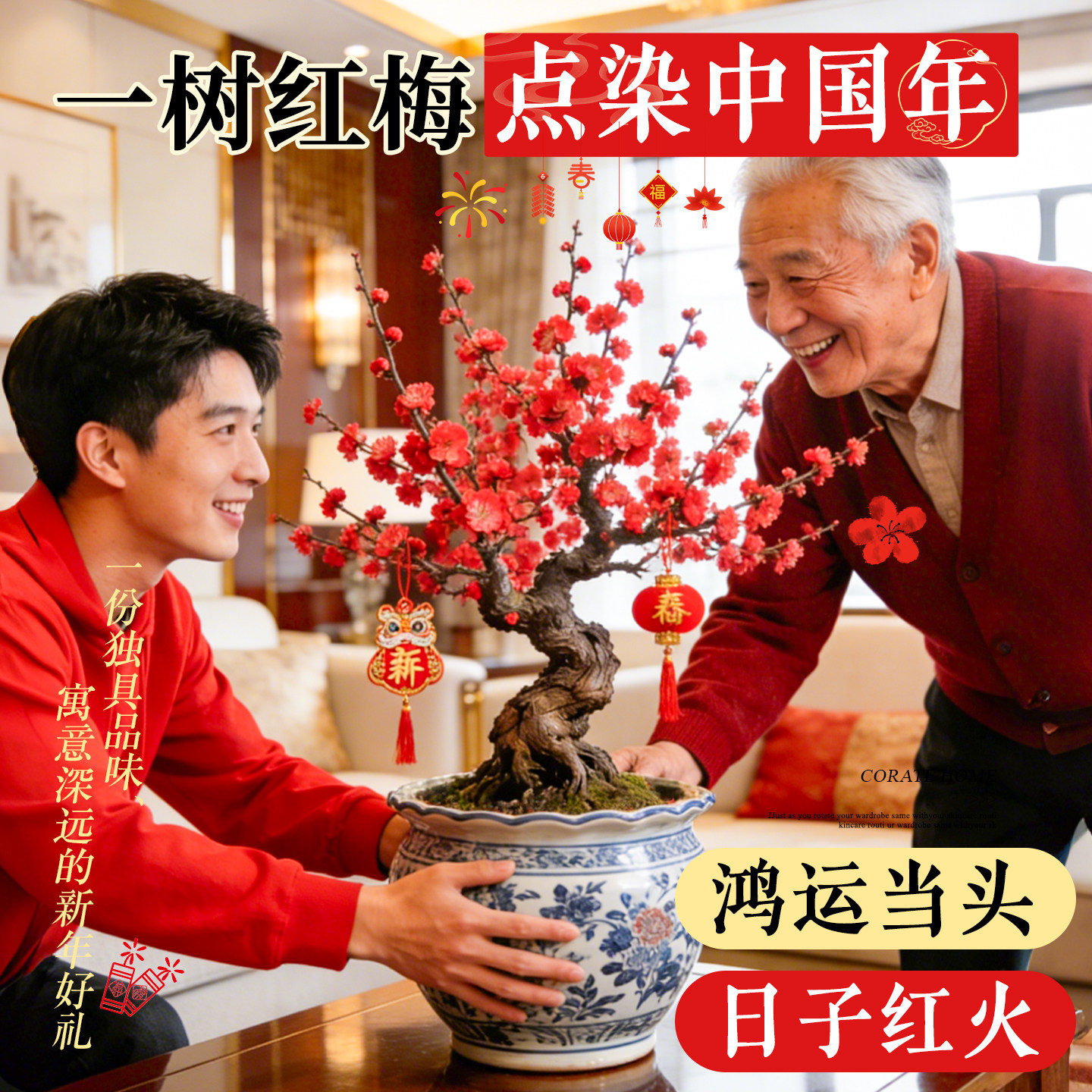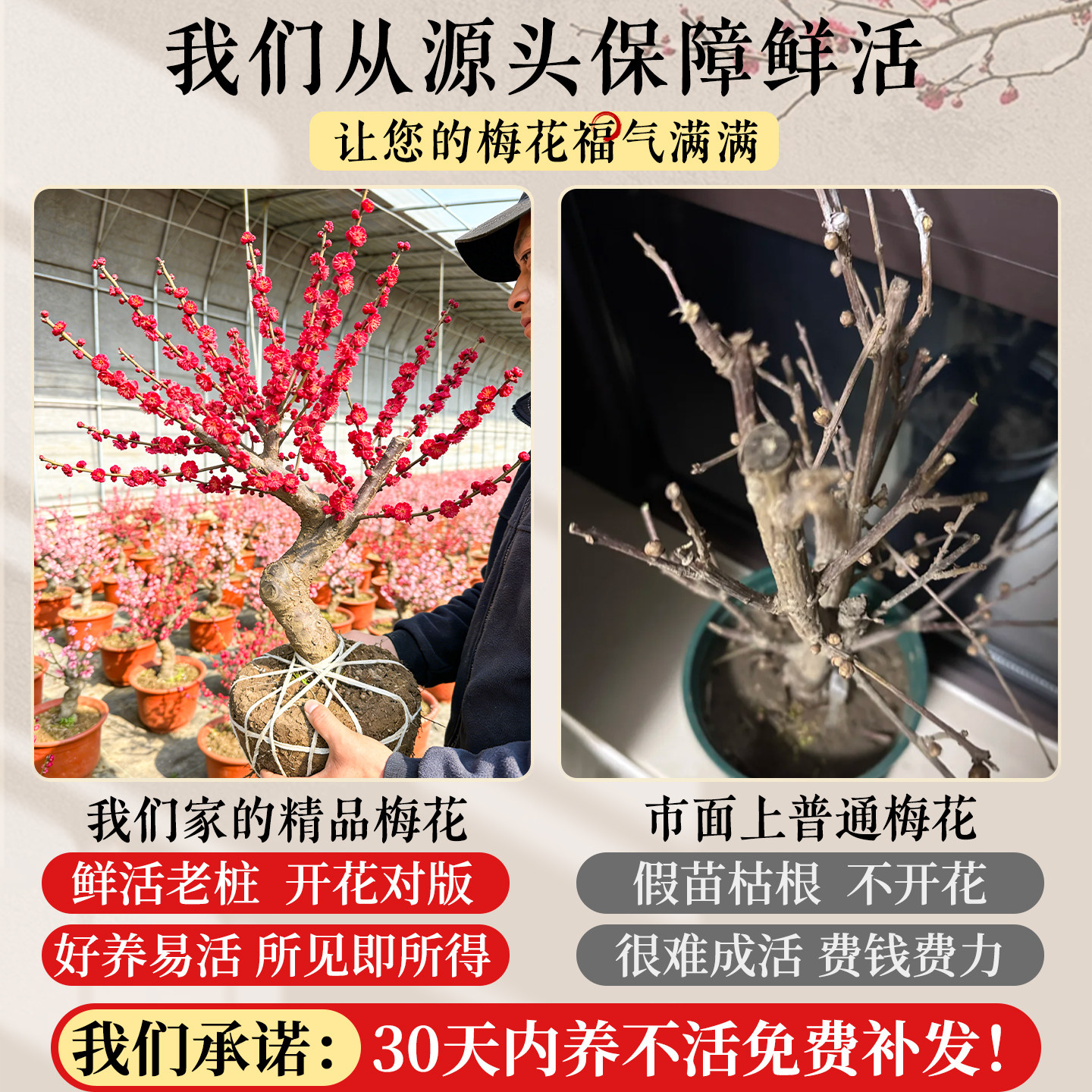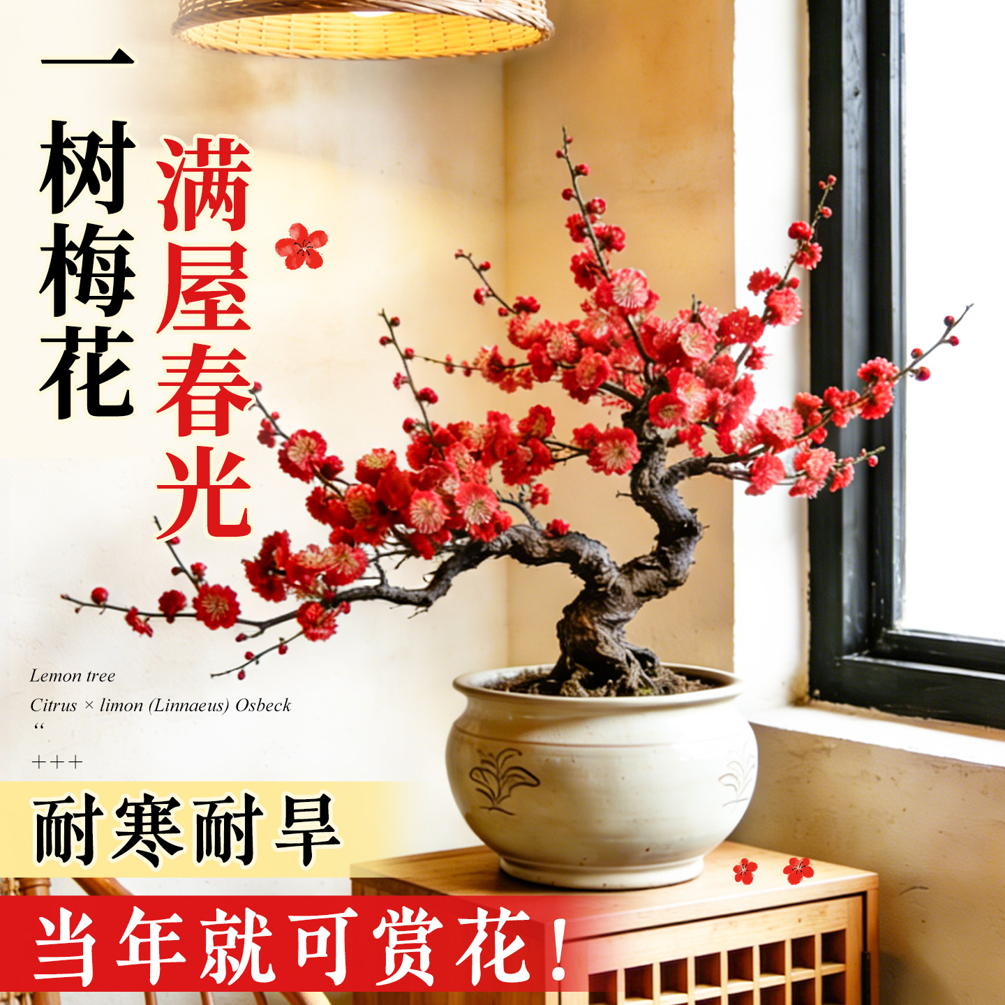 红梅腊梅年宵花鲜枝带花苞室内花卉老桩盆景地栽四季开花客厅阳台