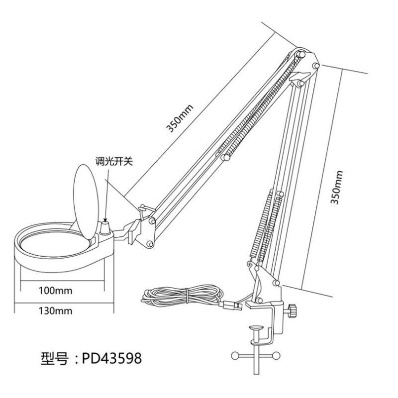 PD43598T三色灯led亮度可调夹式放大镜20倍高清阅读维修焊接雕刻
