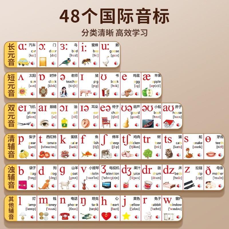 音标有声挂图英语发音和自然拼读发音48个国际英文字母表学习神器