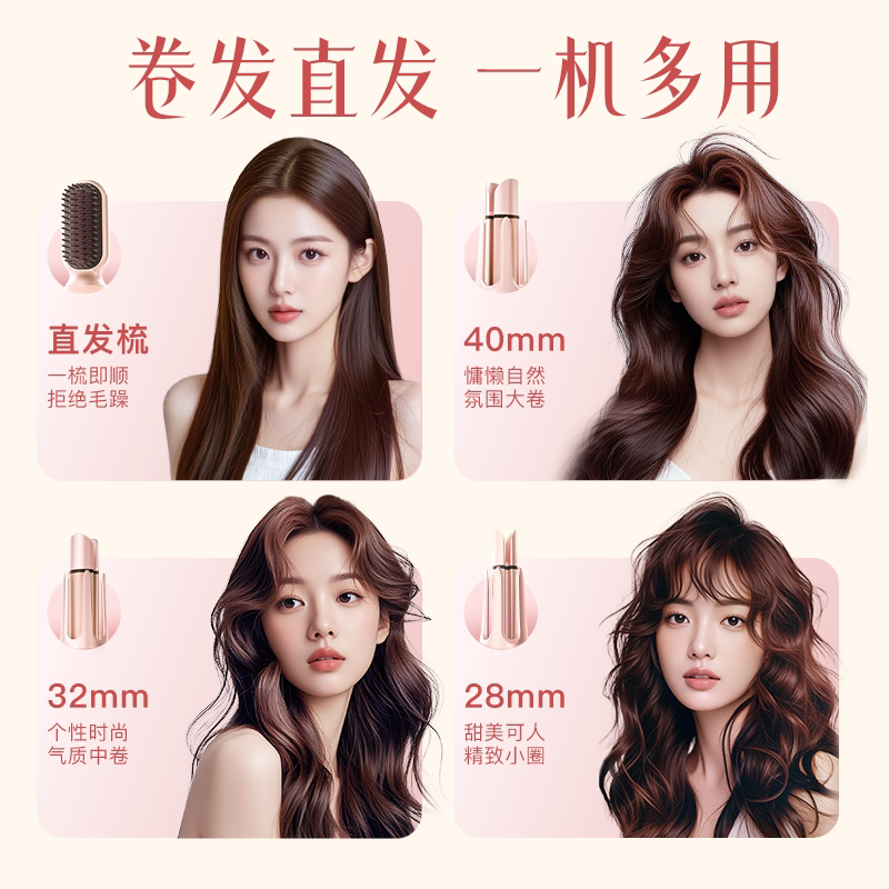无线直发梳负离子不伤发蓬松高颅顶神器直卷两用夹板卷发棒电梳子