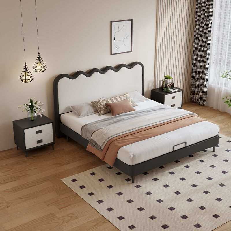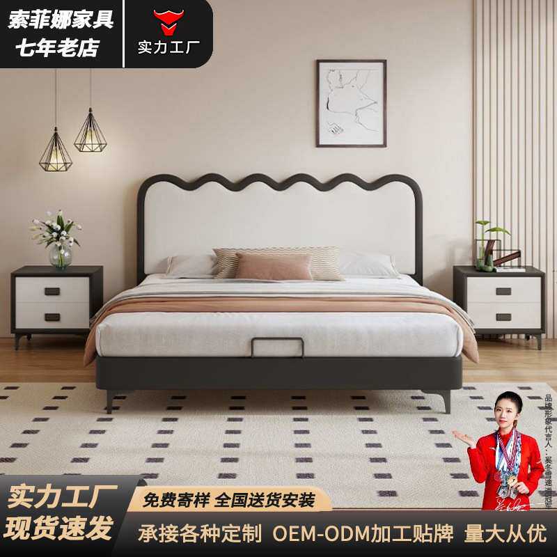 意式极简涟漪皮床1.8米双人床1.5米小户型单人床主卧软体皮艺床