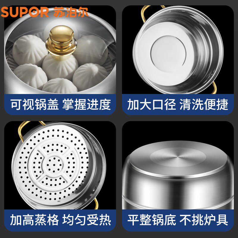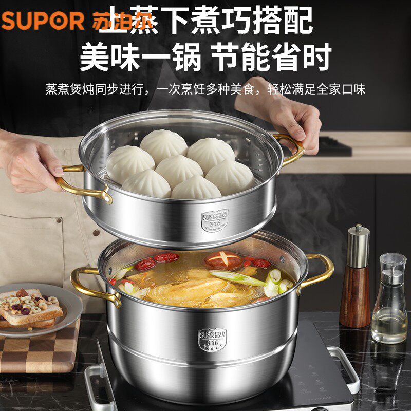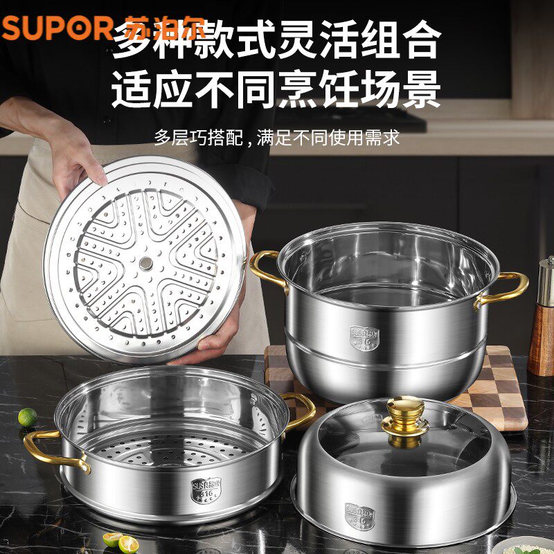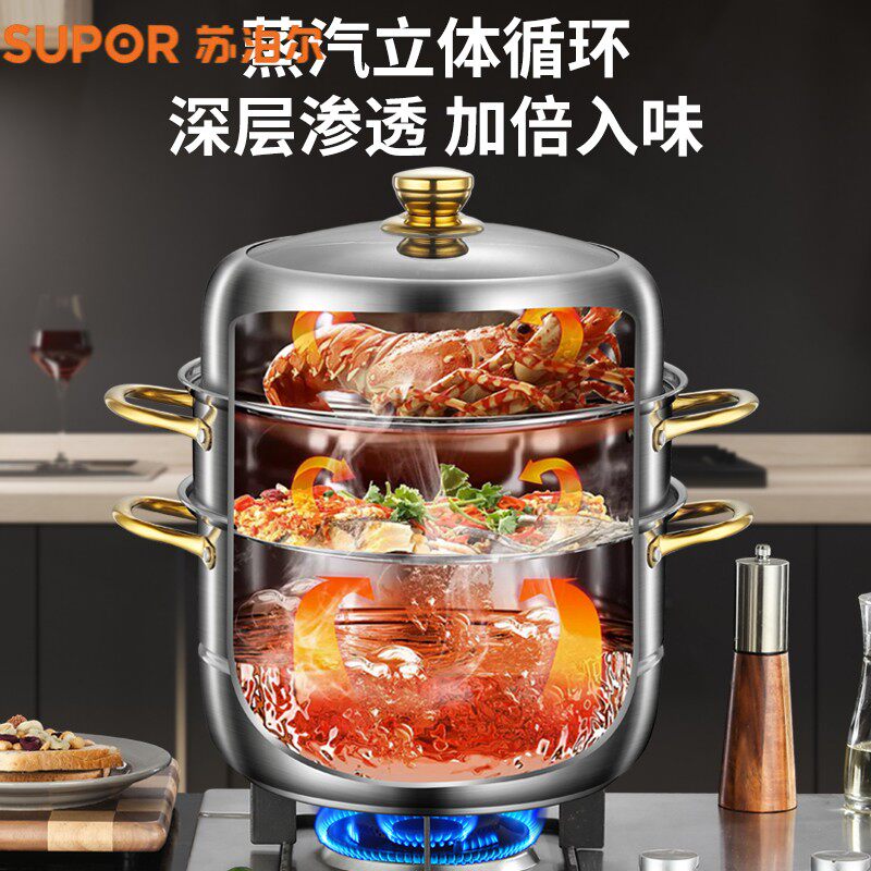 苏泊尔蒸锅家用316不锈钢三层加厚蒸煮炖304蒸笼蒸鱼馒头电磁炉煤