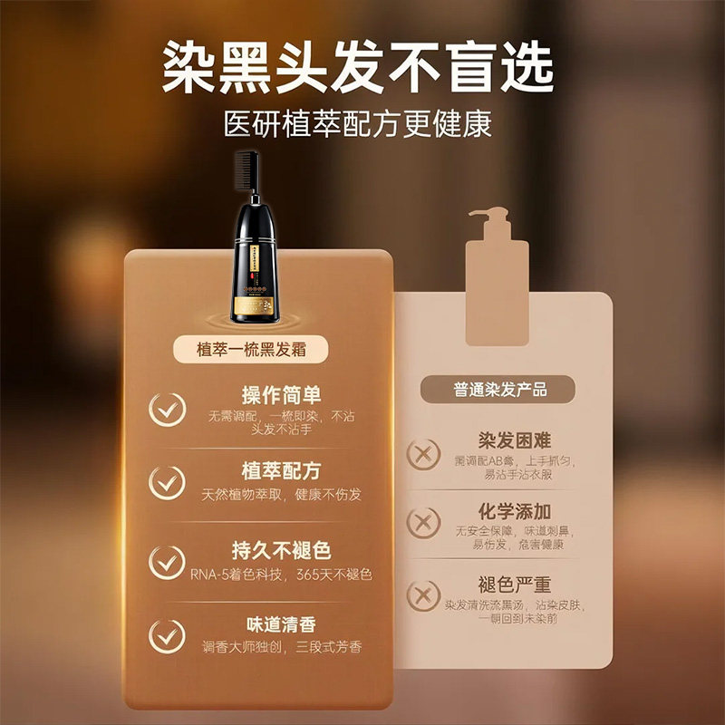 韩金靓染发膏染发剂染发梳植物纯遮盖白发男女士官方正品黑茶色