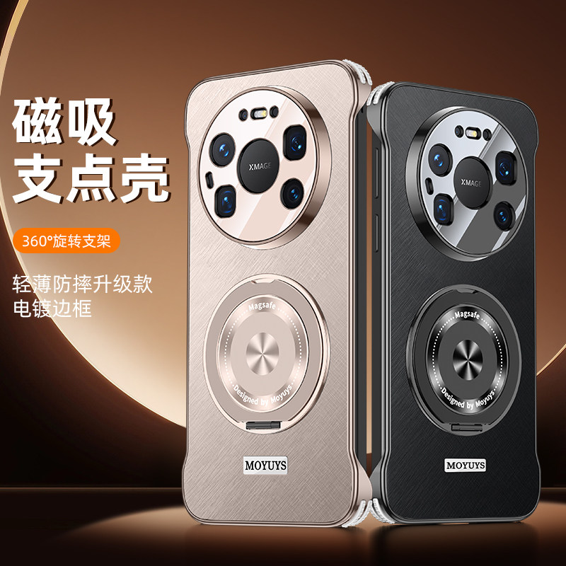 适用华为mate80promax手机壳mate80pro电镀高级感mate70pro磁吸旋转支架mt80/70简约无边框pro+四角防摔爆款