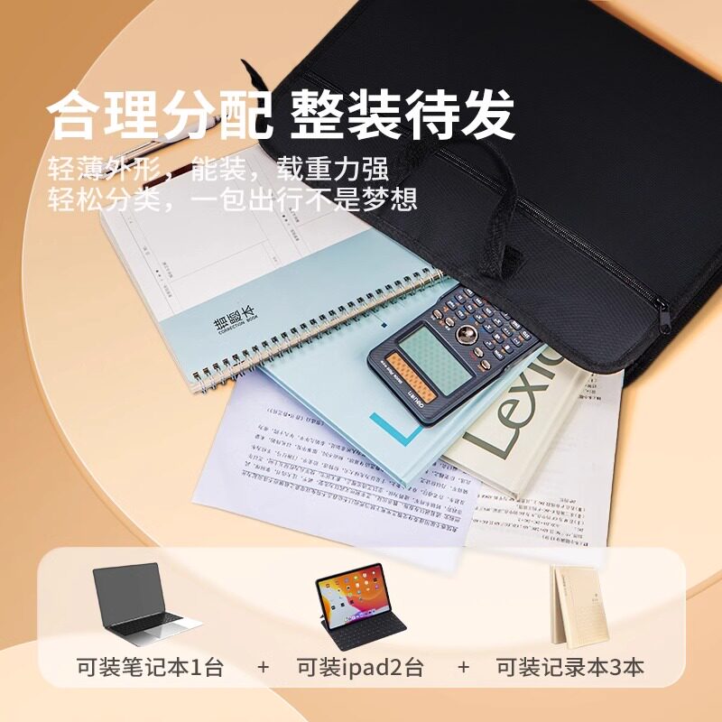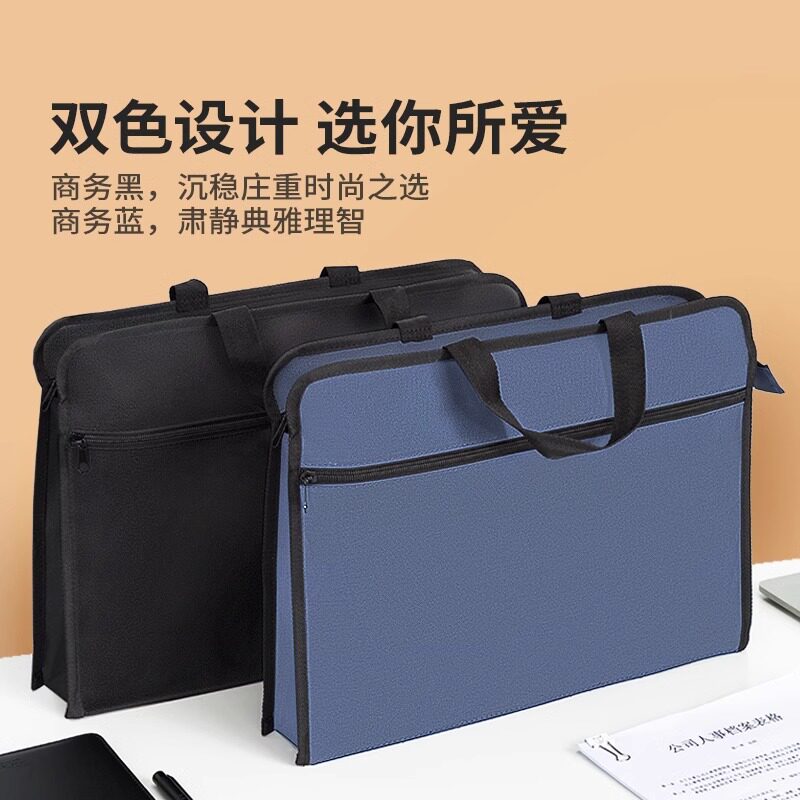 得力63753双袋手提拉链袋商务公文包A4文件资料办公简约大容量