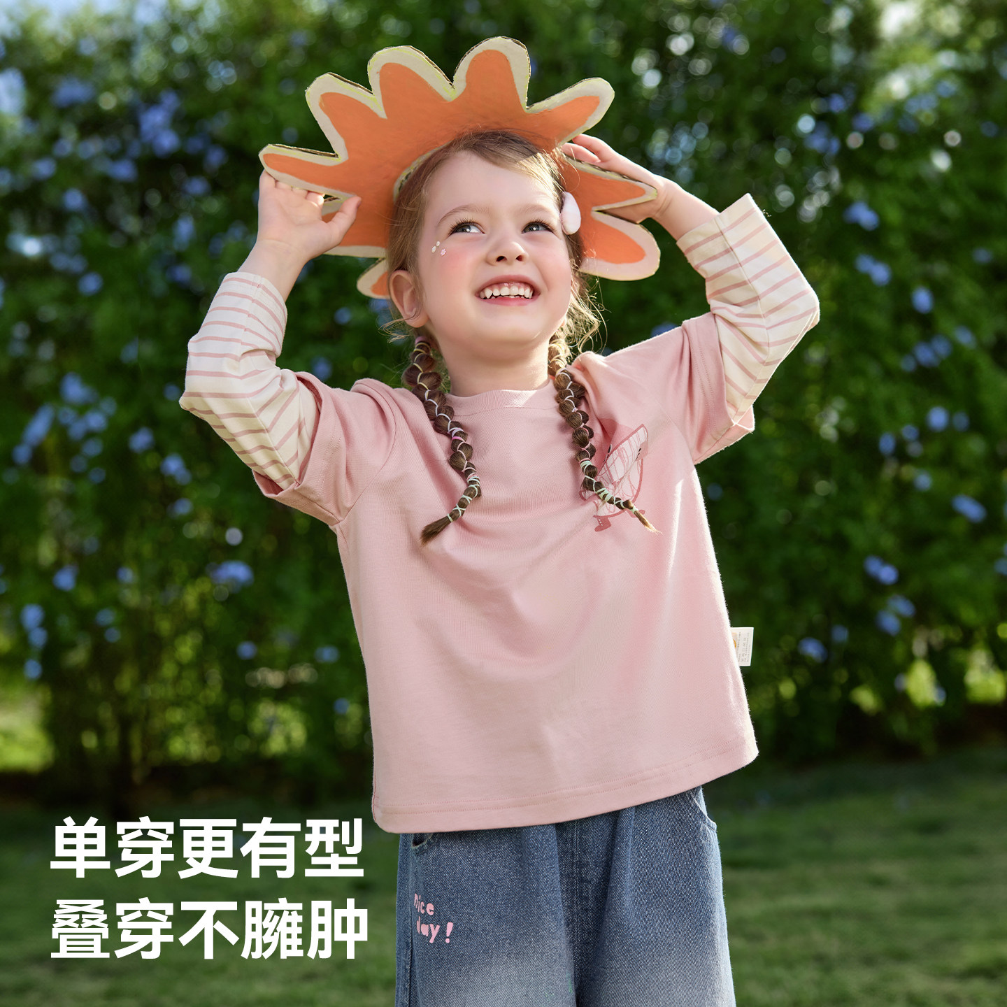 贝肽斯[7A抗菌]儿童长袖t恤2026春装新款宝宝男女童假两件上衣