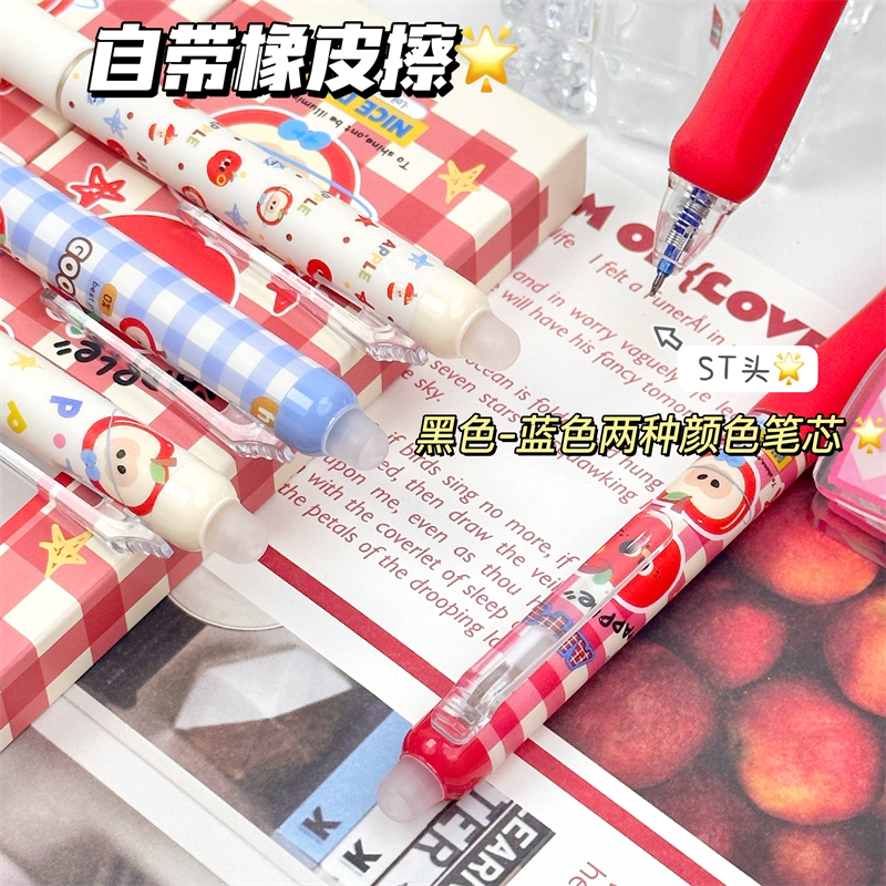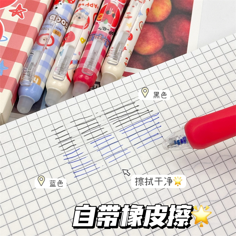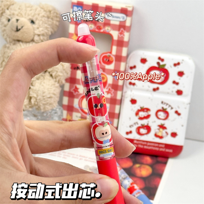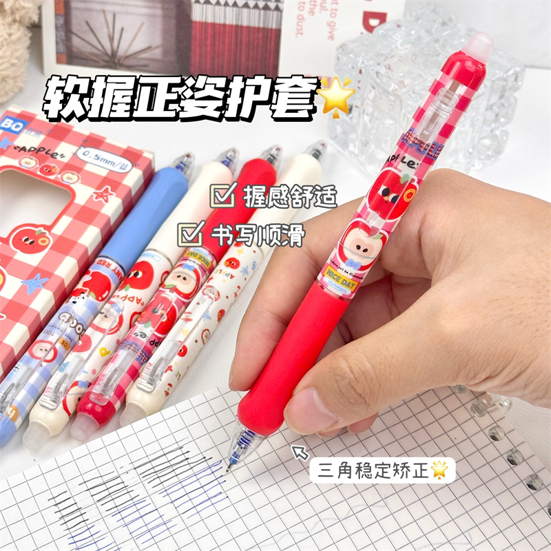 正姿可擦笔苹果派对小学生专用热可擦按动中性笔高颜值ins风晶蓝