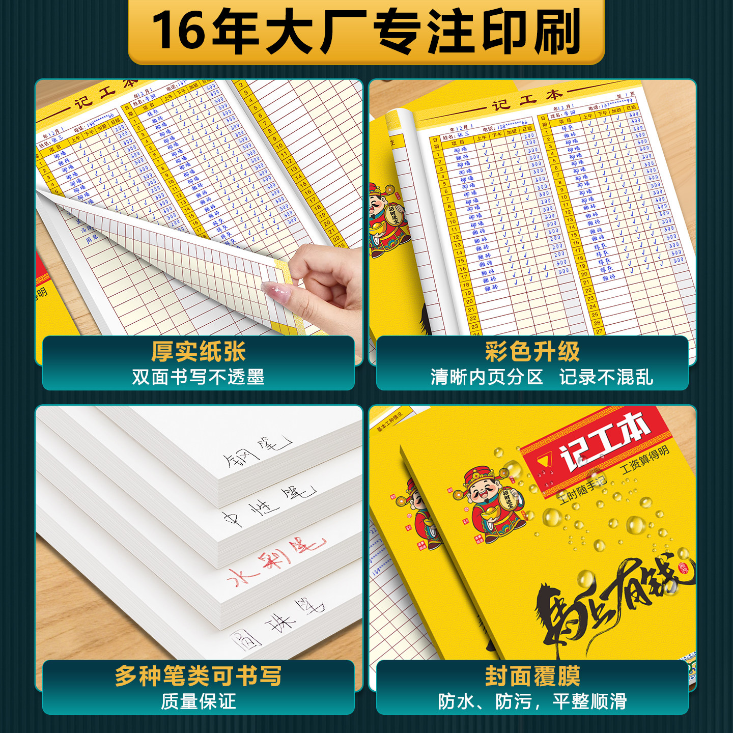 2026年记工本31天带备注个人工地记工簿新款大格子考勤表包工头单人工日工天记录本定制临时工出勤工时登记本