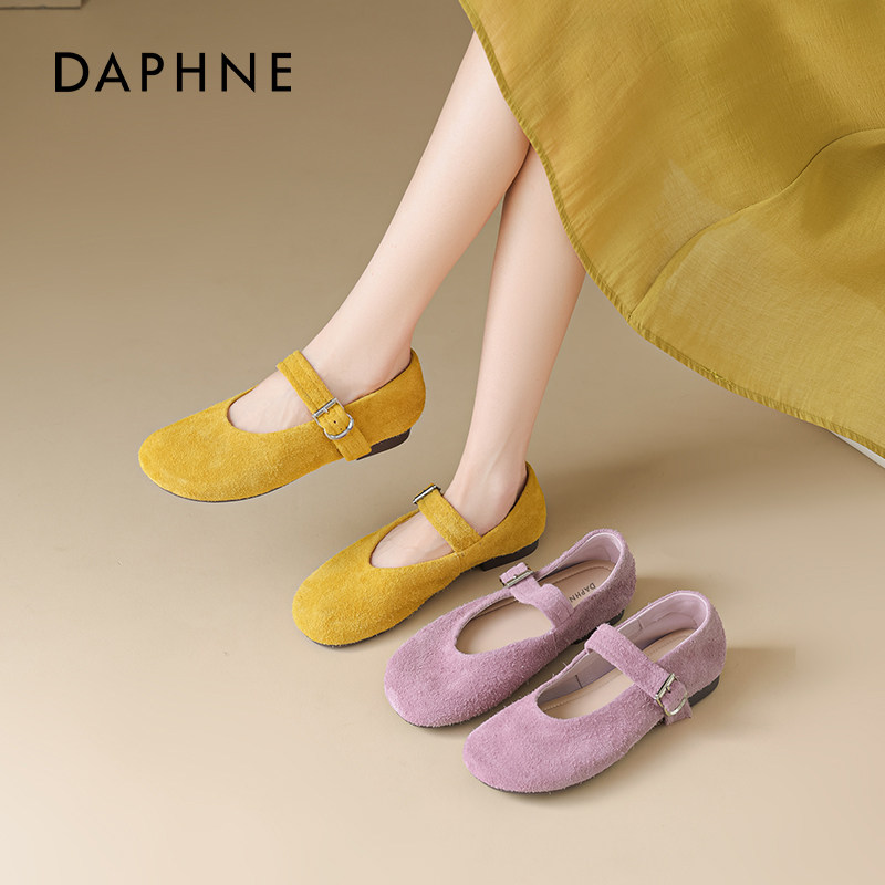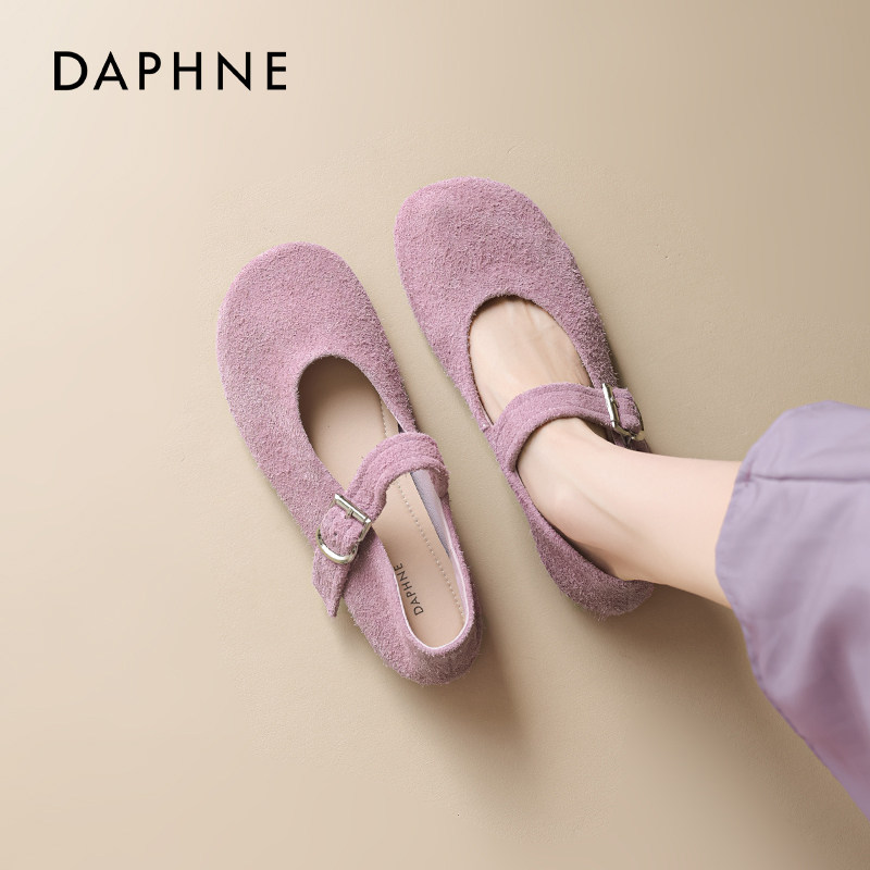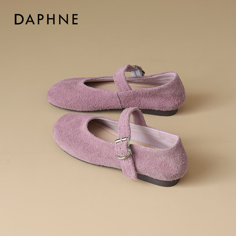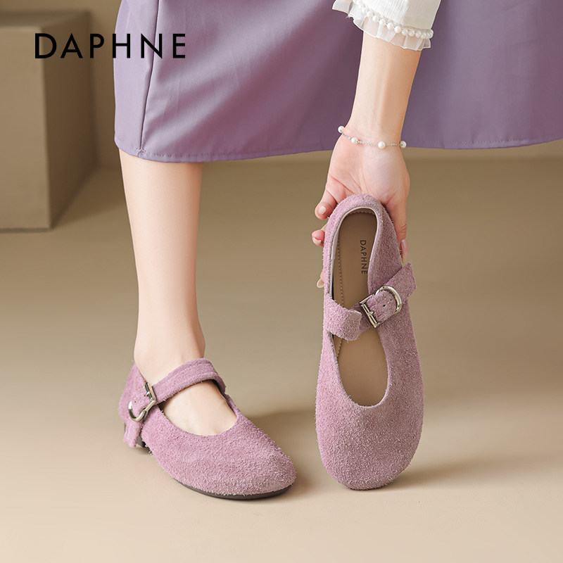 达芙妮紫色玛丽珍鞋女2026新款春季凉鞋配裙子芭蕾单鞋反绒平底鞋