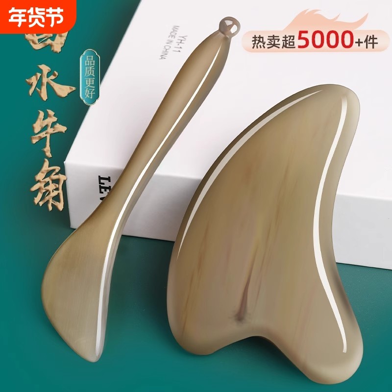 白水牛角刮痧板面部美容脸部专用刮脸板眼部拨筋棒女全身通用工具