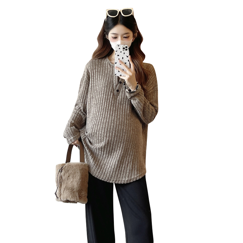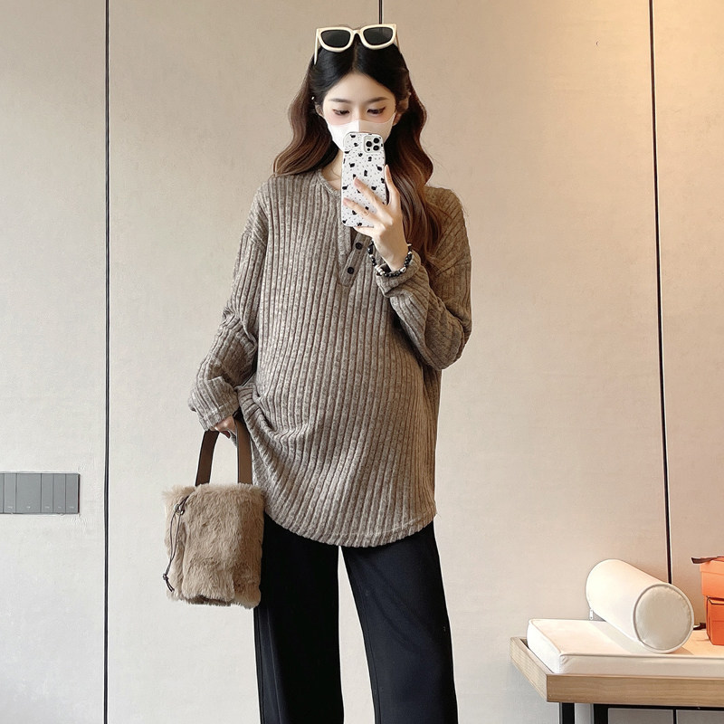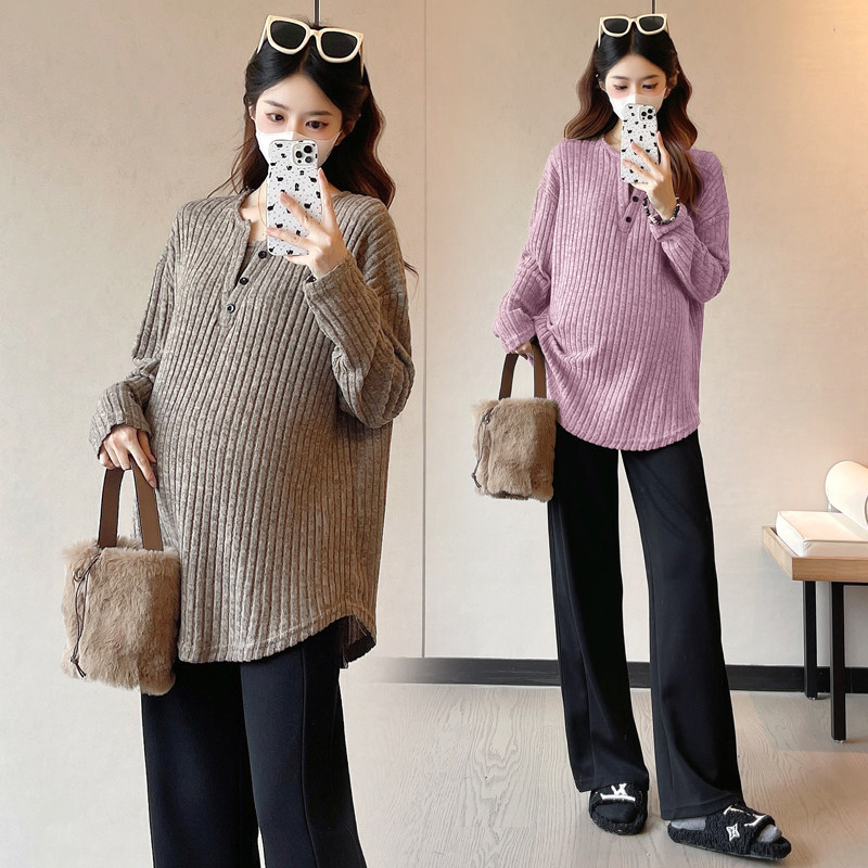 婧麒孕妇装毛衣假两件秋冬款2025新款打底衫外穿时尚百搭上衣秋冬