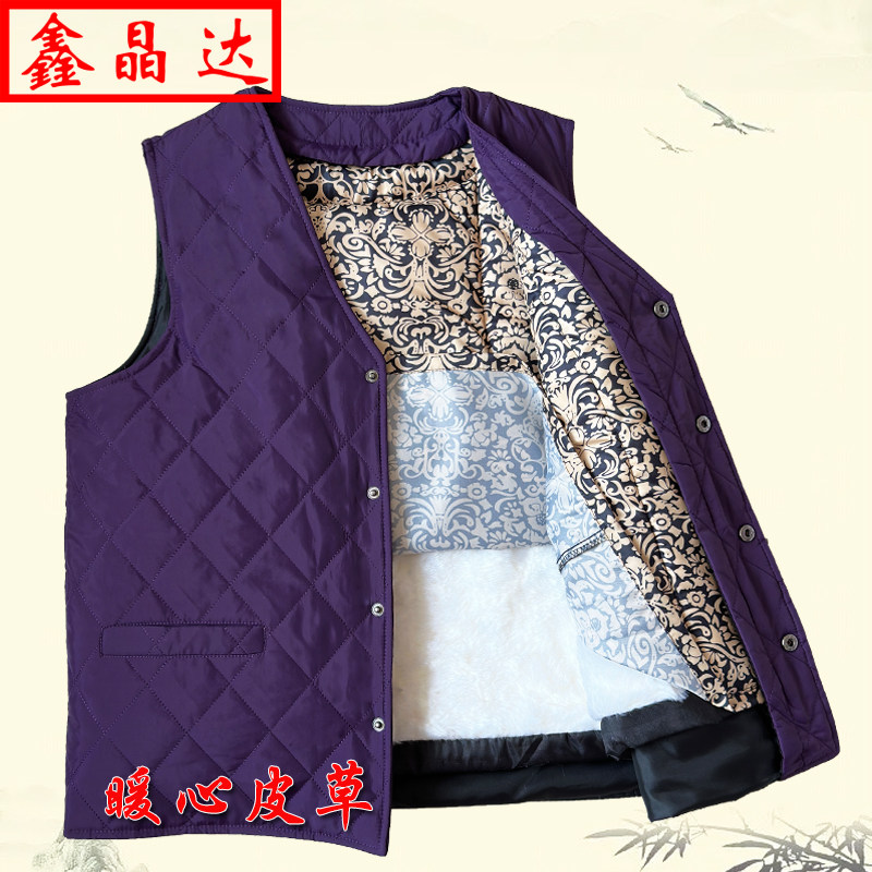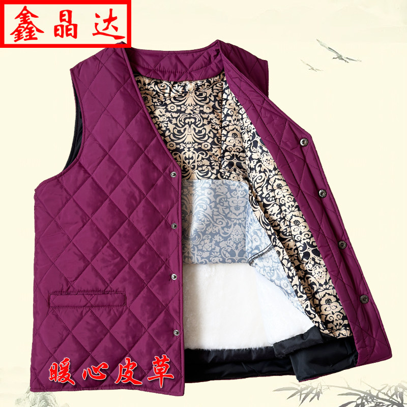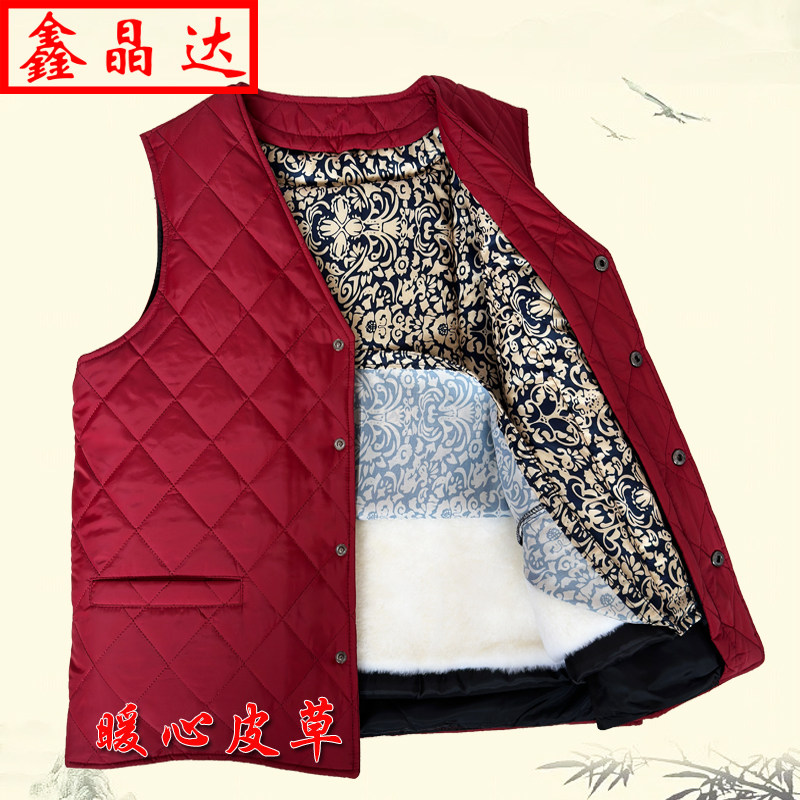 冬季羊毛马甲女皮毛一体加厚棉坎肩妈妈保暖背心中老年真羊皮马夹