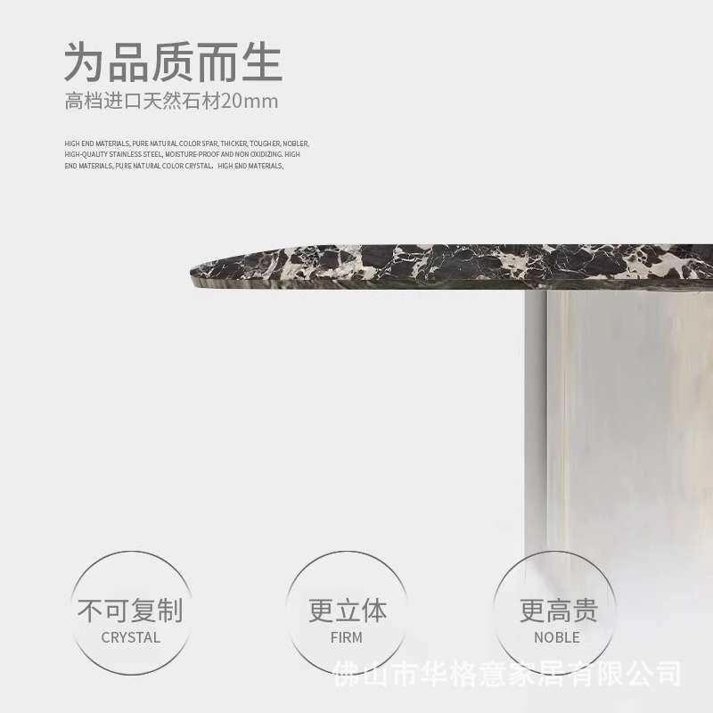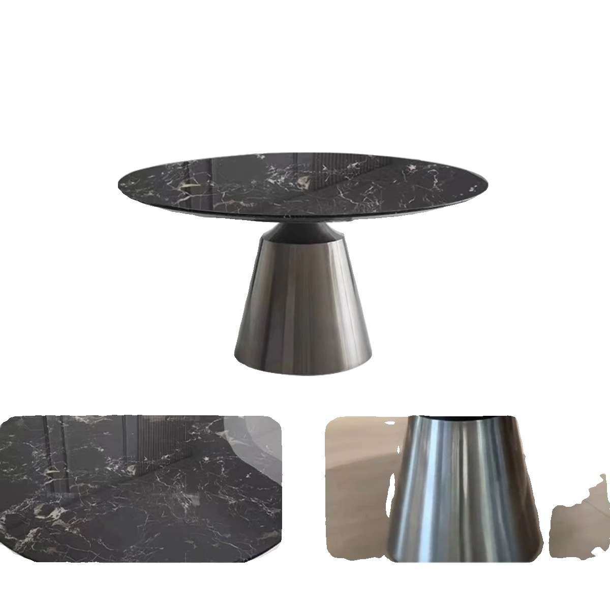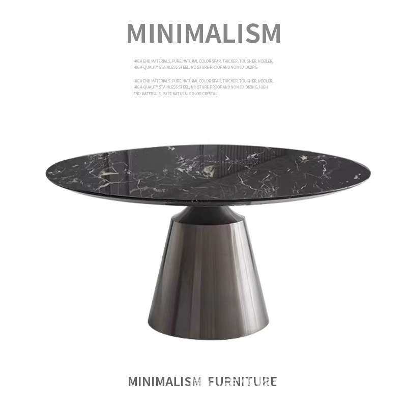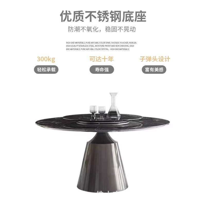 意式极简大理石餐桌现代简约轻奢不锈钢设计师奢石圆形餐桌带转盘