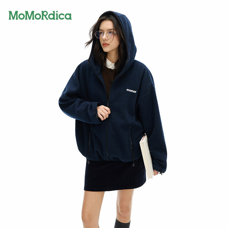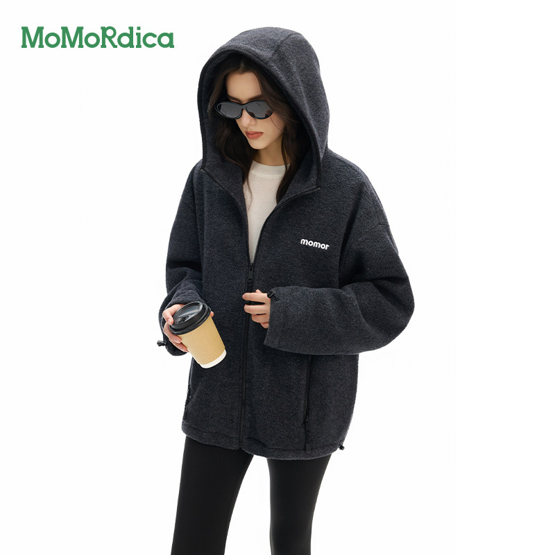 字母刺绣休闲外套宽松加厚摇粒绒外套