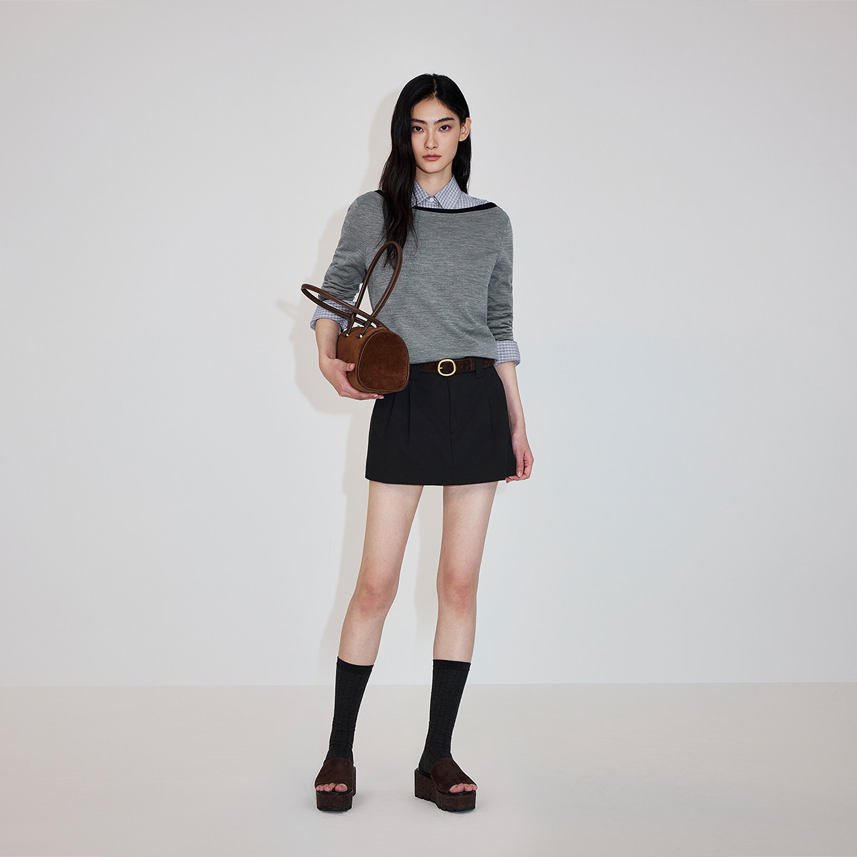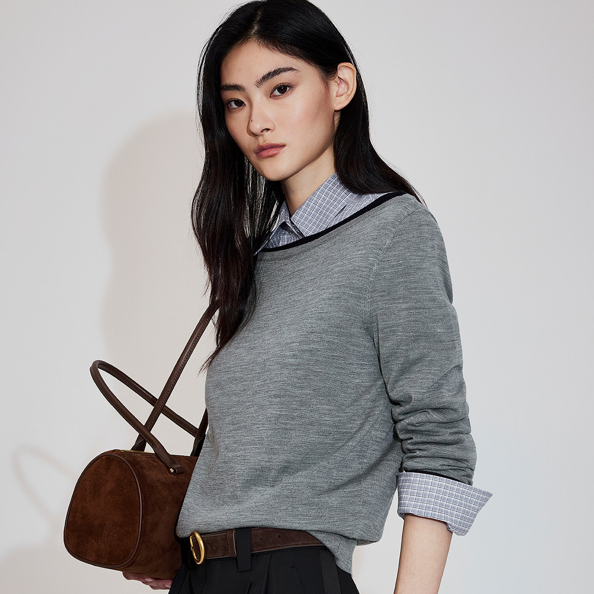 【新品】OCHIRLY欧时力 针织上衣26春清爽进口美丽诺羊毛一字领