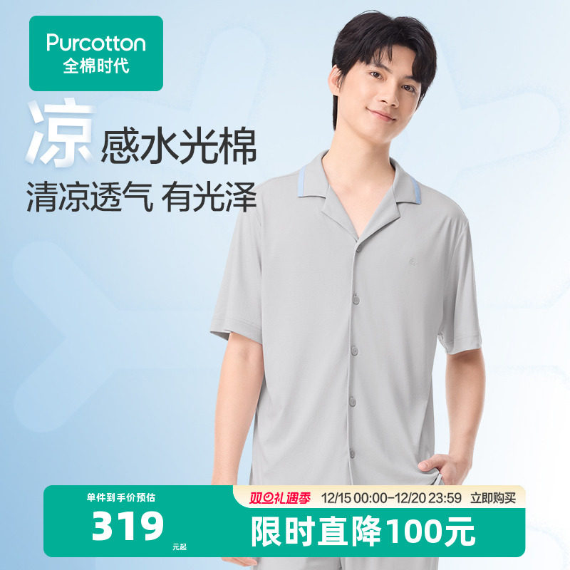 全棉时代水光棉家居服春夏新款睡衣短袖长裤睡裤夏裤子居家服