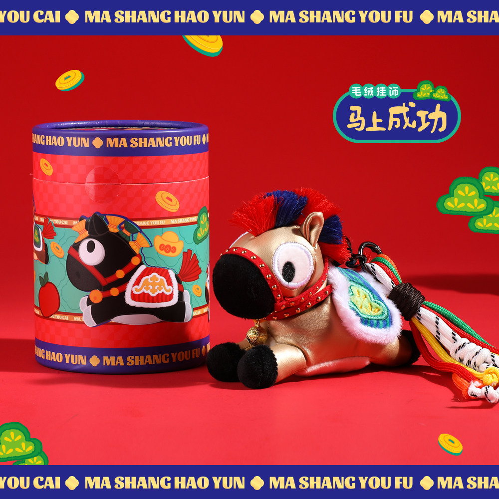 新款2026年福运驾到盲盒小马公仔挂件马年创意玩偶钥匙扣丑萌挂饰