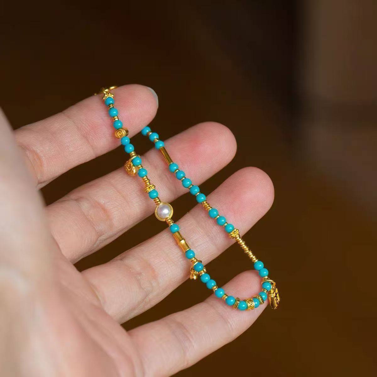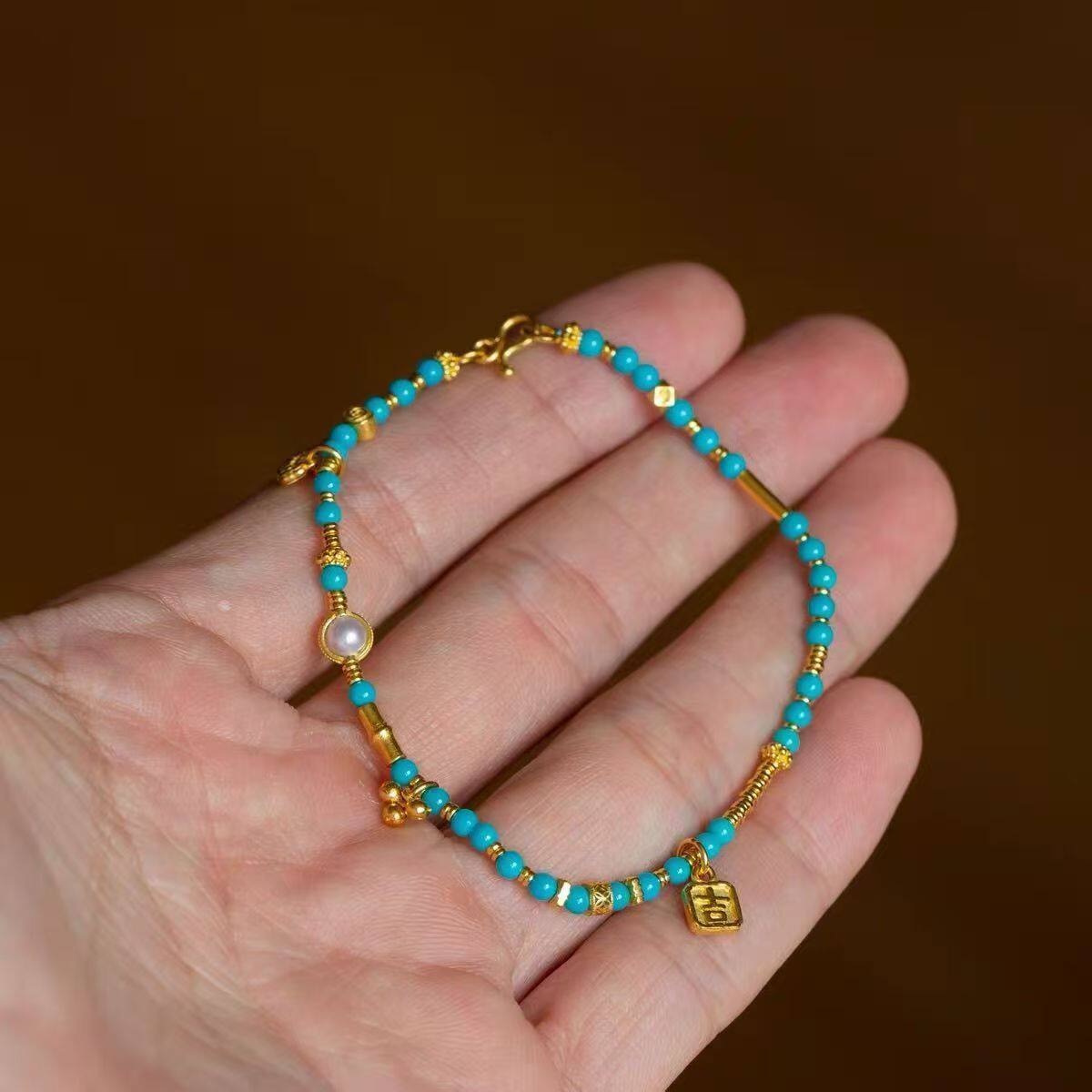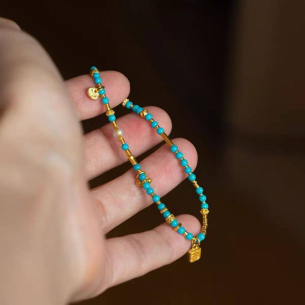 精致绿松石手串金饰小坠显白提气质女生日常通勤叠戴配饰精品手饰