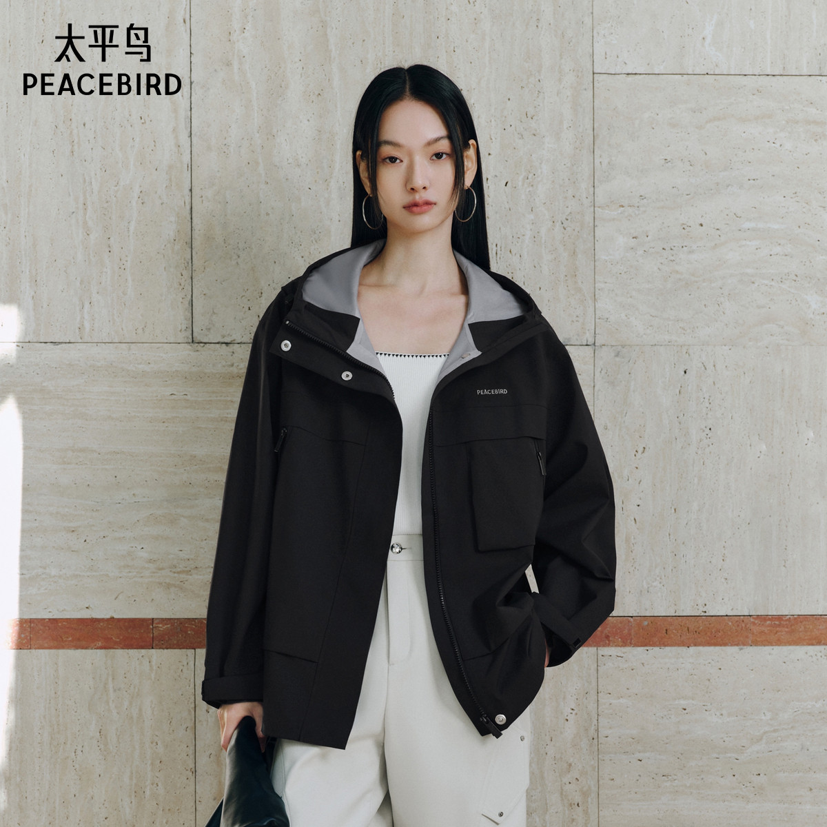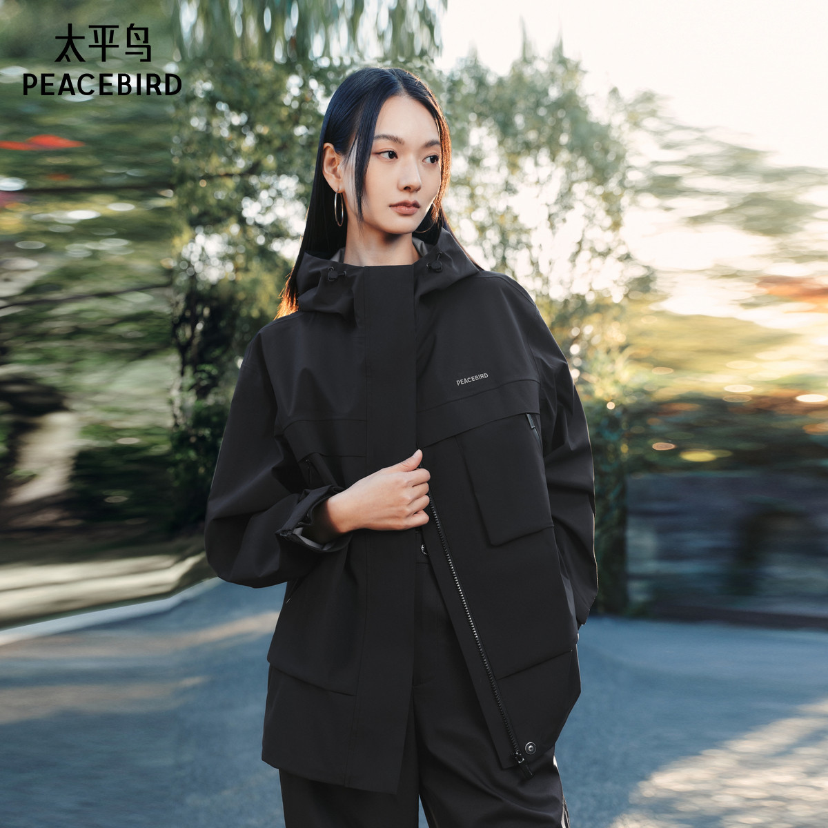 太平鸟情人节新品系列粉色冲锋衣外套女25春装新款防风防雨夹克*