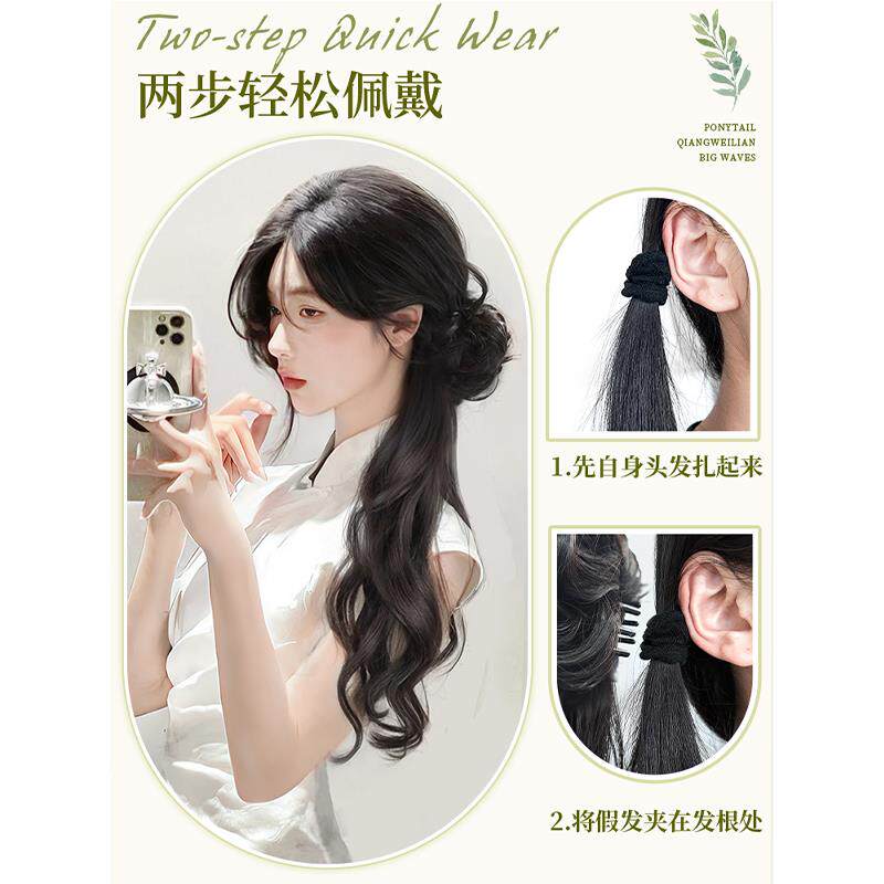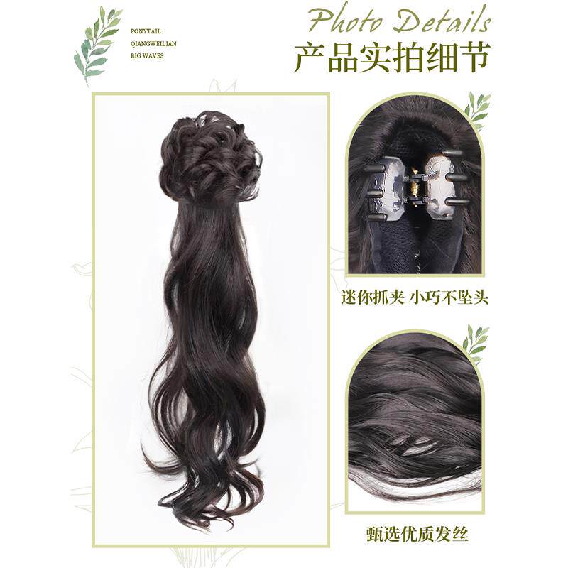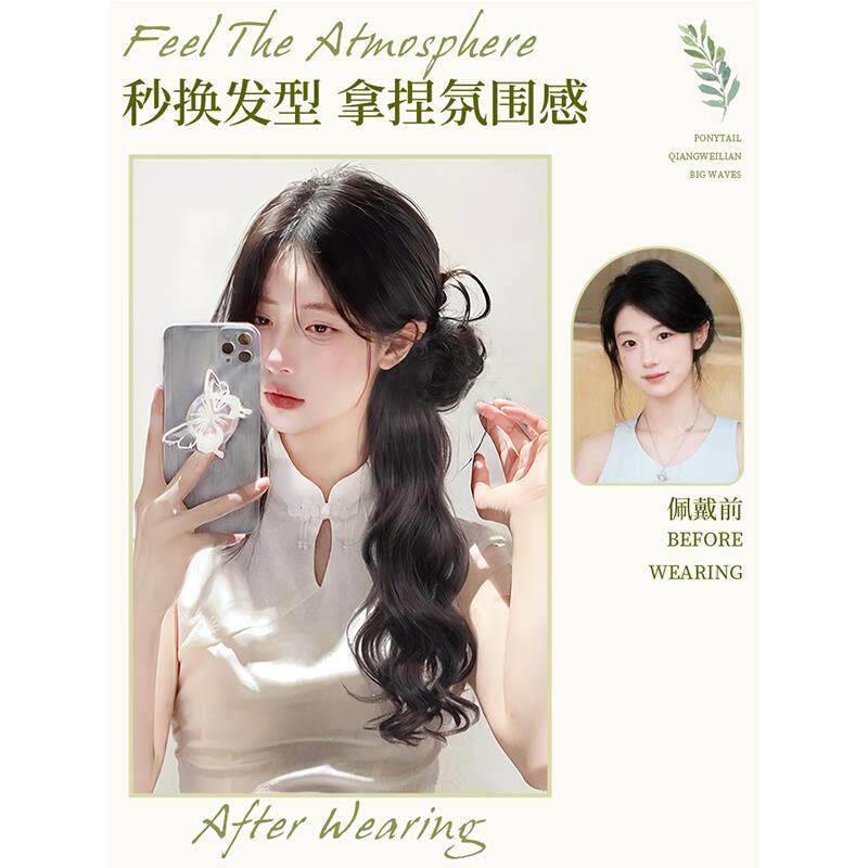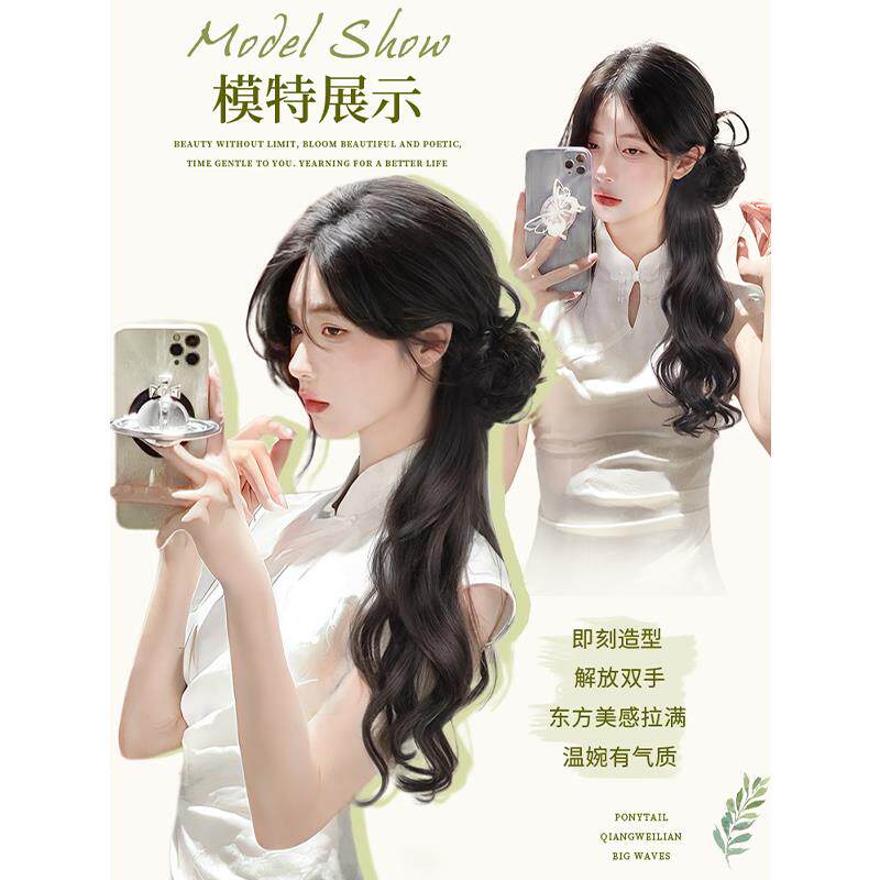 假发辫马尾女新中式花苞假发辫子古风抓夹侧发型波浪真发高温丝