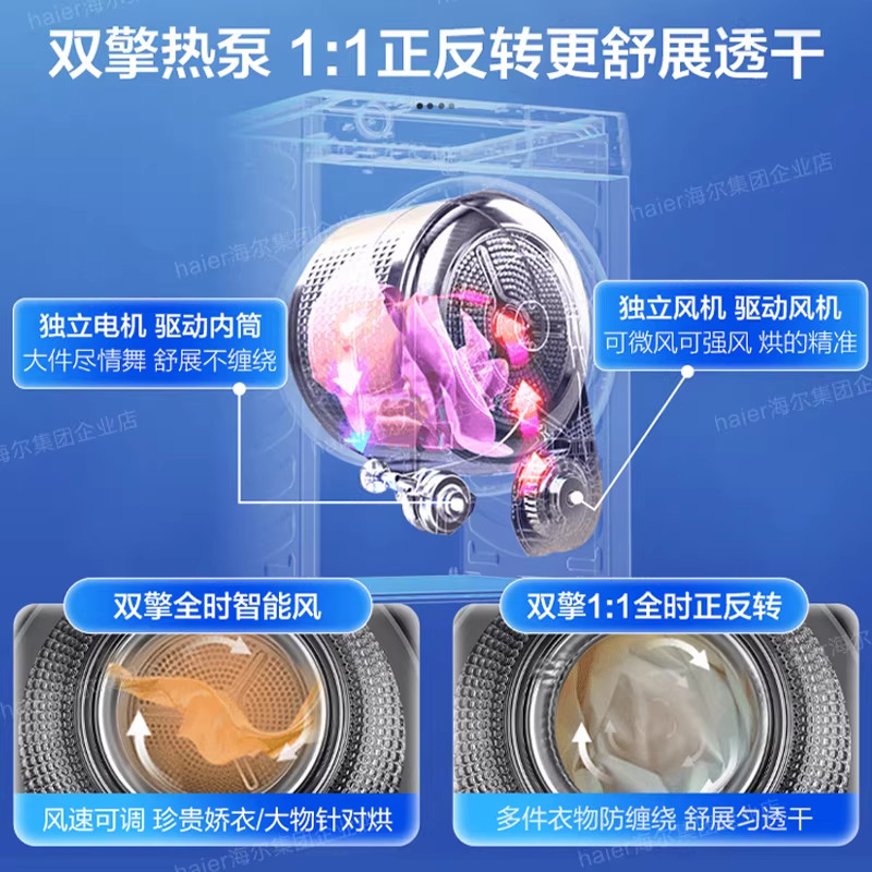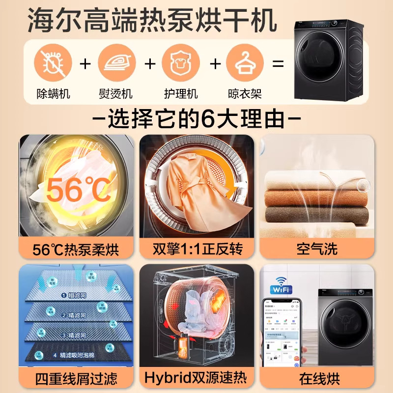 【云溪4.0升级】海尔热泵烘干机77E家用10公斤变频速干衣机旗舰店