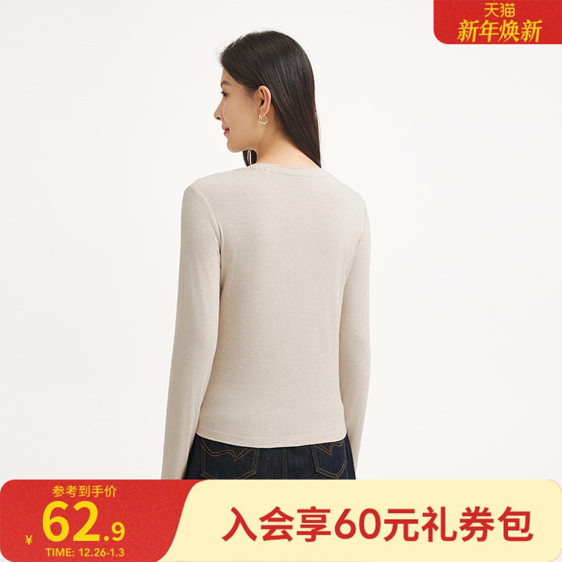 热风2025年秋季新款女士圆领修身长袖T恤无感标签好穿舒适