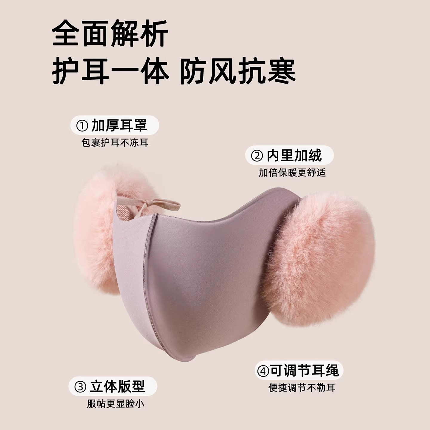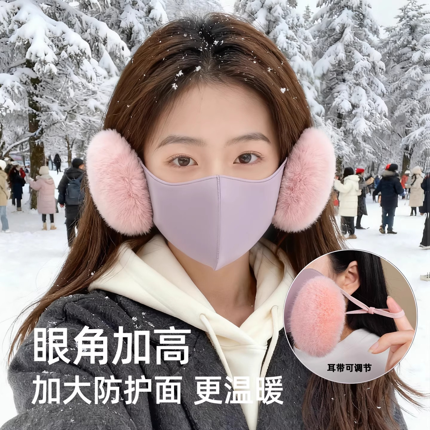 保暖耳罩口罩冬防风防寒护耳二合一面罩耳套女骑车一体高颜值加绒